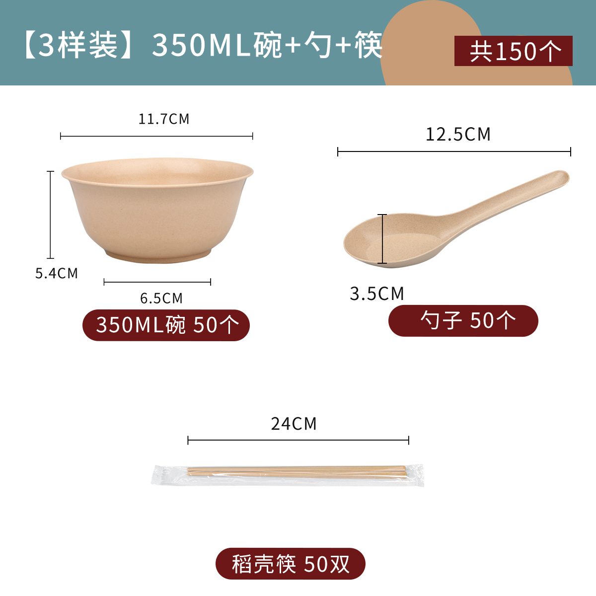 ☆★[three-piece classification package]: 350ml bowl + spoon + rice husk chopsticks, 50 each ☆★