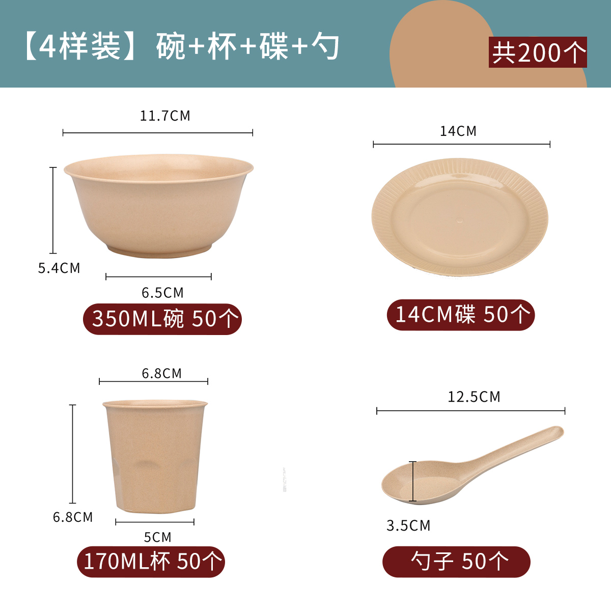 ☆★[four-piece classification package]: 350ml bowl + cup + spoon + rice husk chopsticks, 50 each ☆★