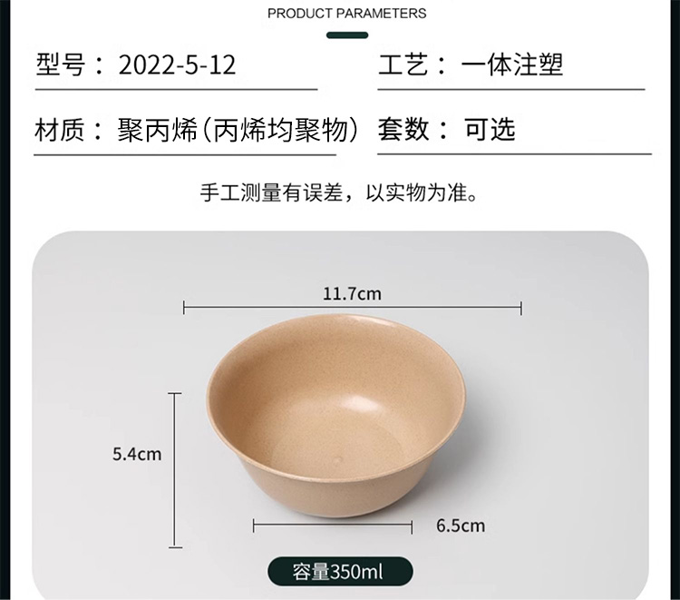 ☆★[five-piece classification package]: 350ml bowl + dish + 170ml cup + spoon + rice husk chopsticks, 50 each ☆★