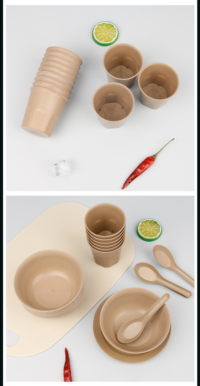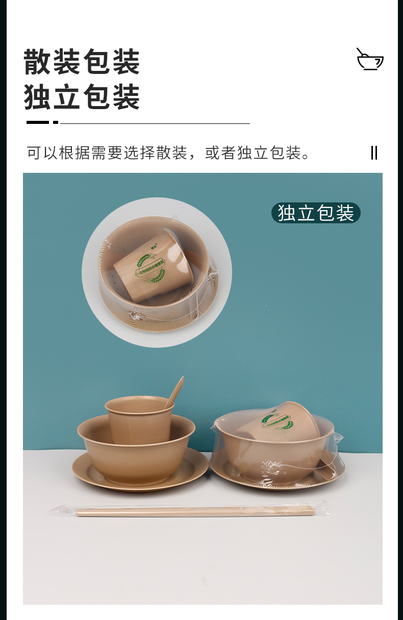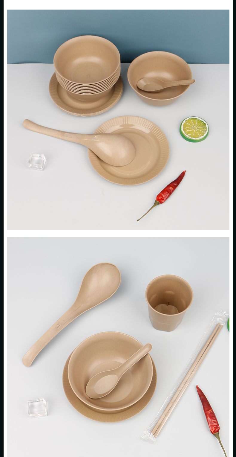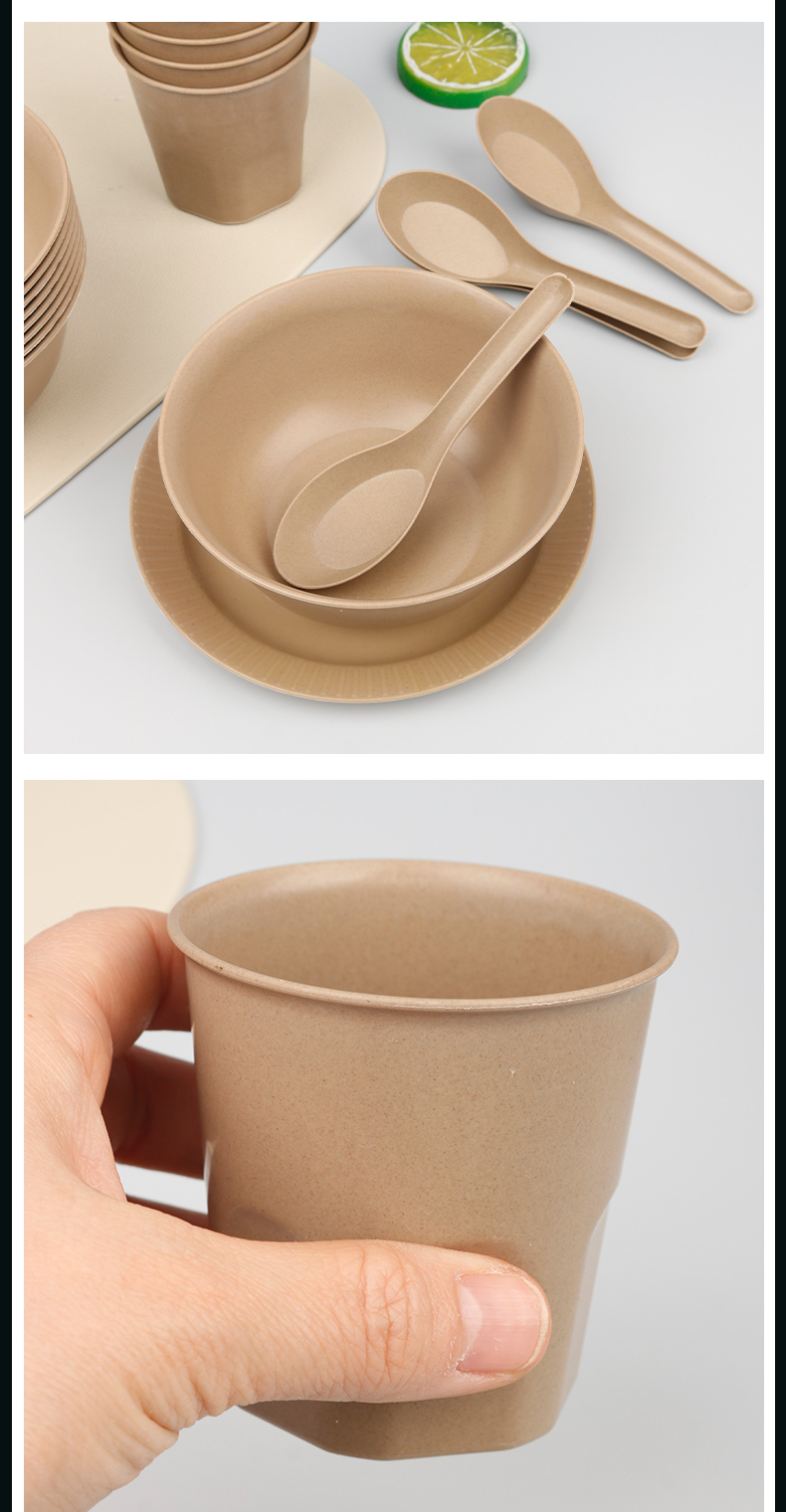 ☆★[five-piece classification package]: 350ml bowl + dish + 170ml cup + spoon + rice husk chopsticks, 20 each ☆★