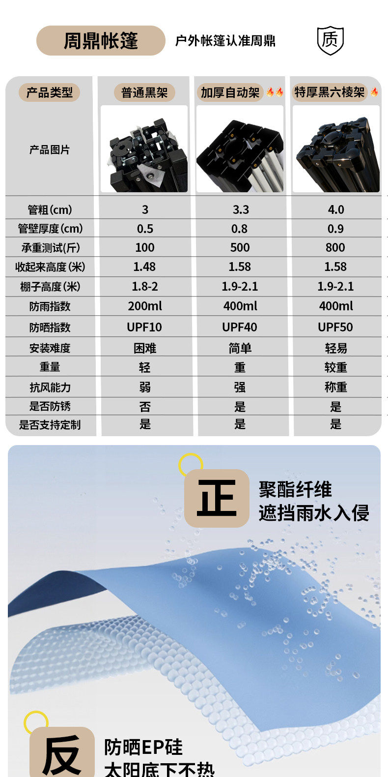 3*3 特厚 六棱架 +3面围布 红色 ( 酒红/卡其/墨绿/蓝留言)正品保证✅