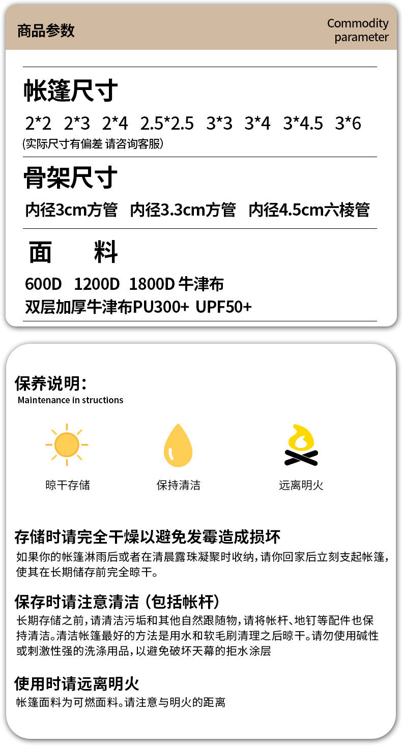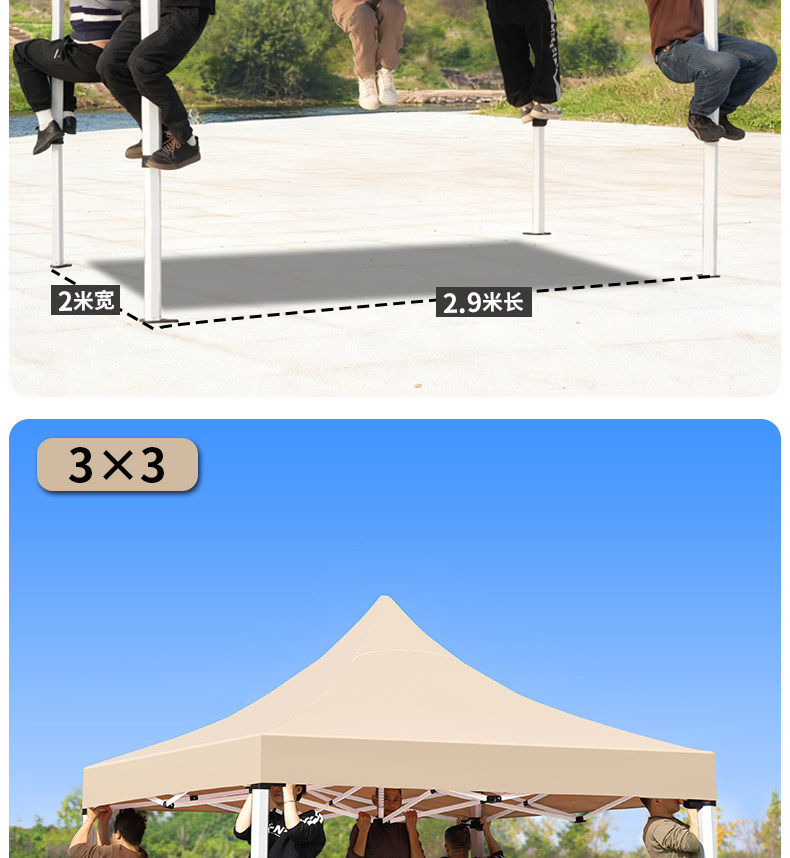 3x3 thickened automatic frame khaki color⭐[tube diameter 3.3 cm] [5-year warranty]✅genuine product guarantee】