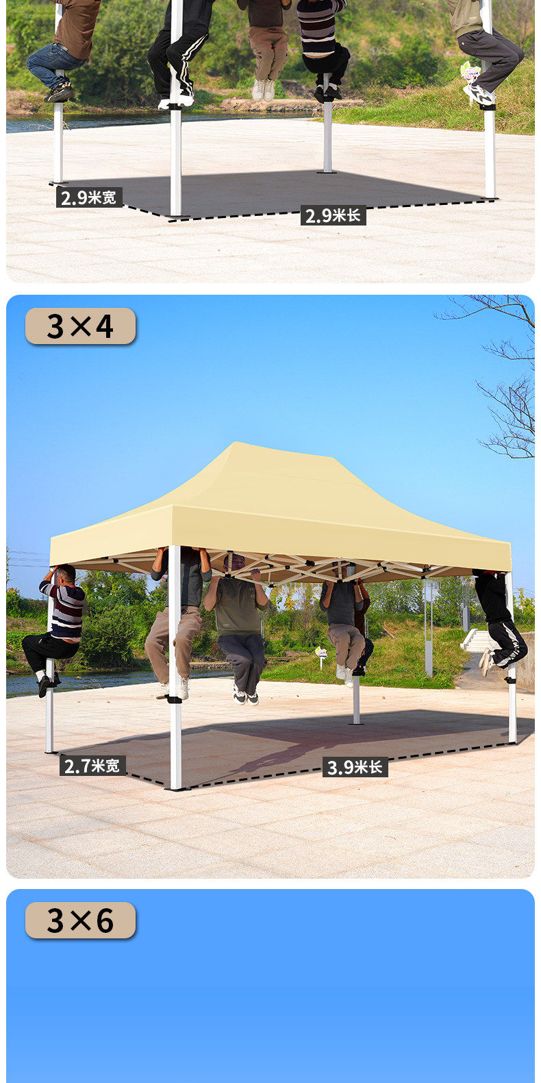 3*6 加厚 自动架 +3面围布 红色( 酒红/卡其/墨绿/蓝留言)正品保证✅