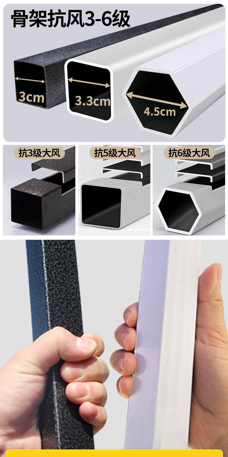 3*3 特厚 六棱架 卡其色 ⭐️【管粗4.5cm】【保修5年✅正品保证】