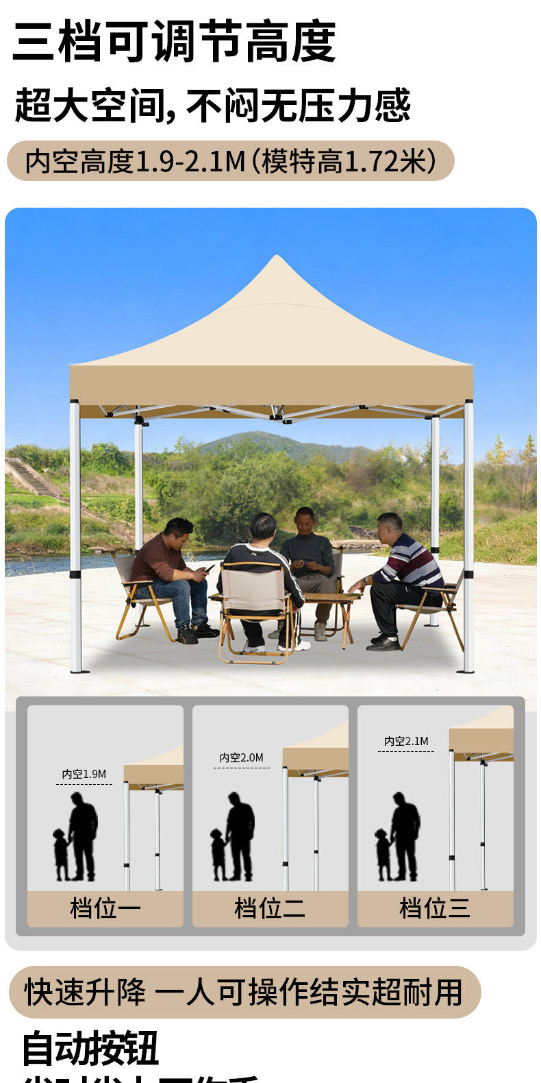 3*4.5 thickened automatic stand khaki color⭐[tube diameter 3.3 cm] [5-year warranty]✅genuine product guarantee】