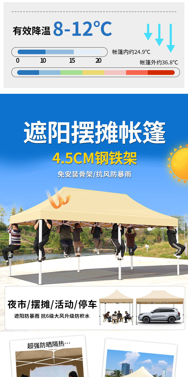 3*4.5 加厚 自动架 +3面围布 红色( 酒红/卡其/墨绿/蓝留言)正品保证