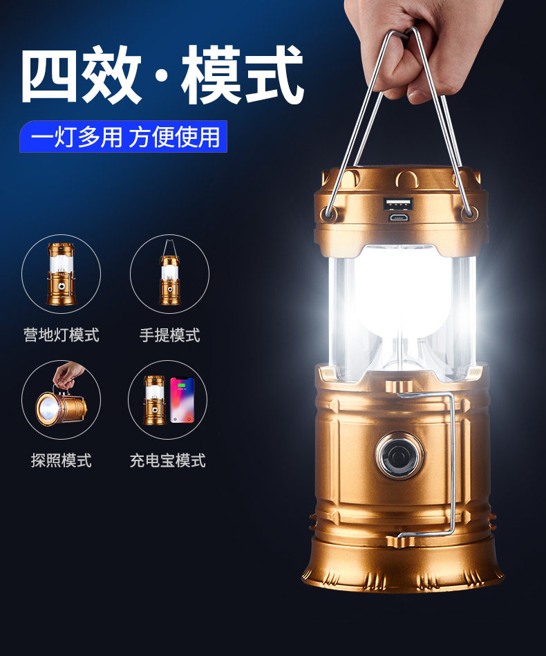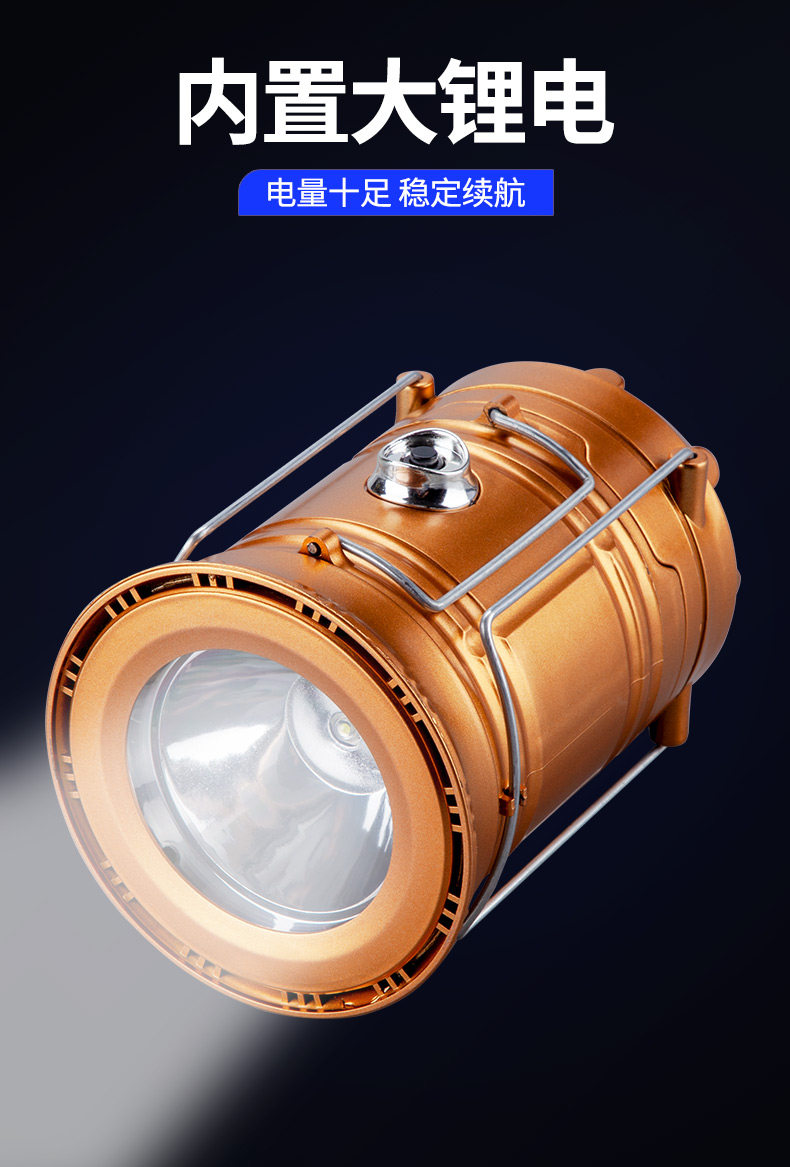 large gold double light source double lithium battery solar energy one can charge mobile phones