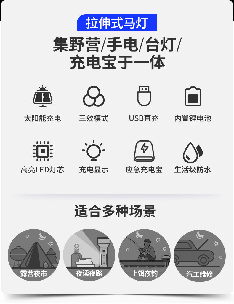large black dual light original dual lithium battery solar energy can charge mobile phones