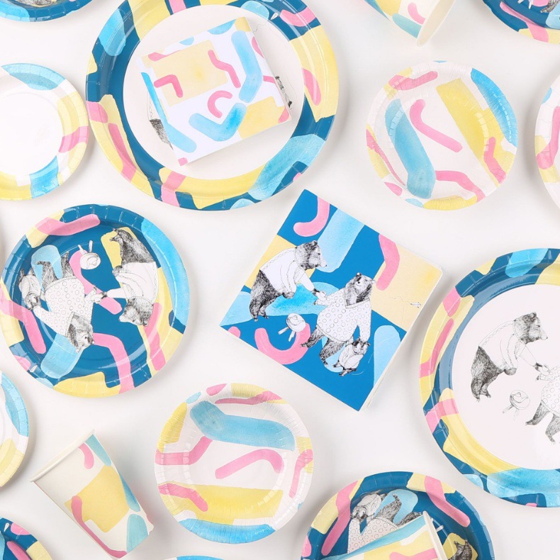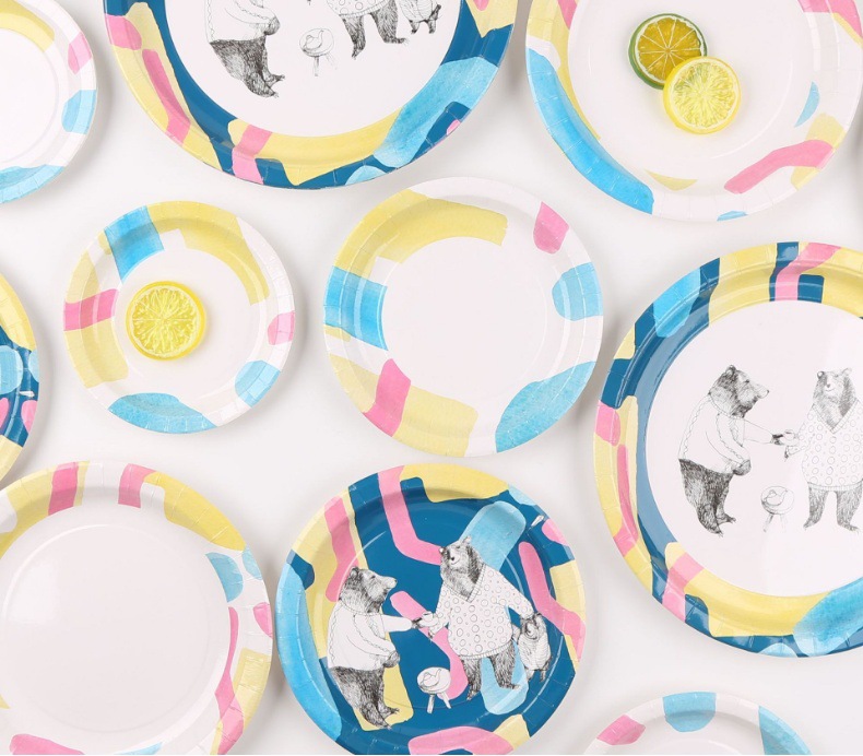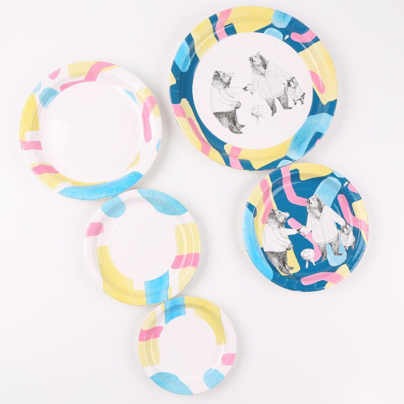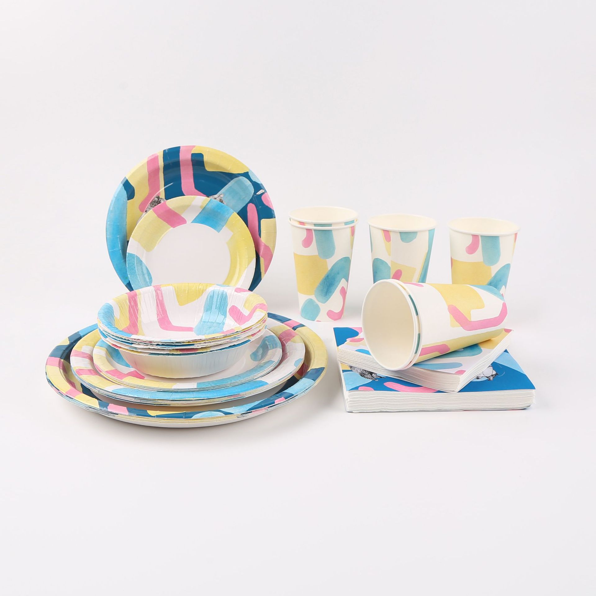 other, disposable paper cups, disposable bowls, a disposable plate