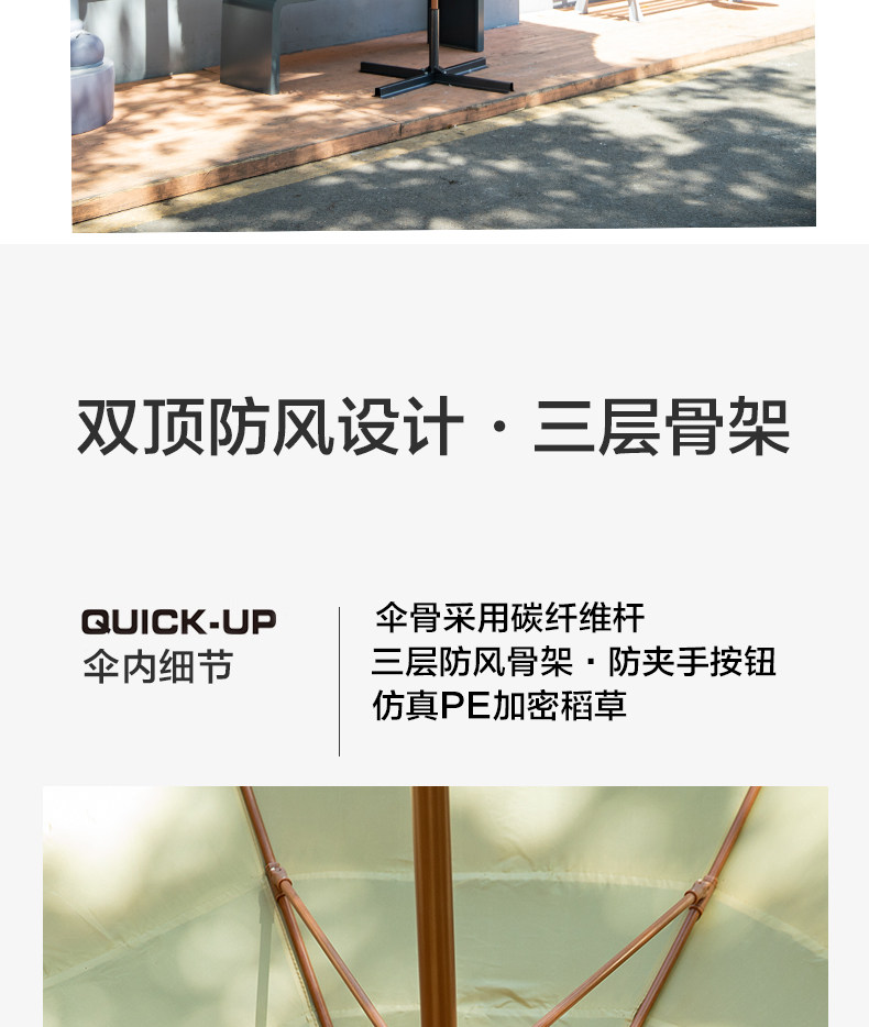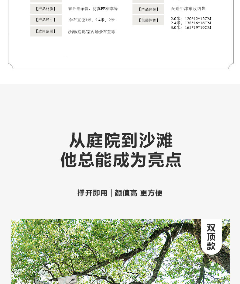 3 m (double-top upgrade) straw umbrella + thickened iron umbrella base