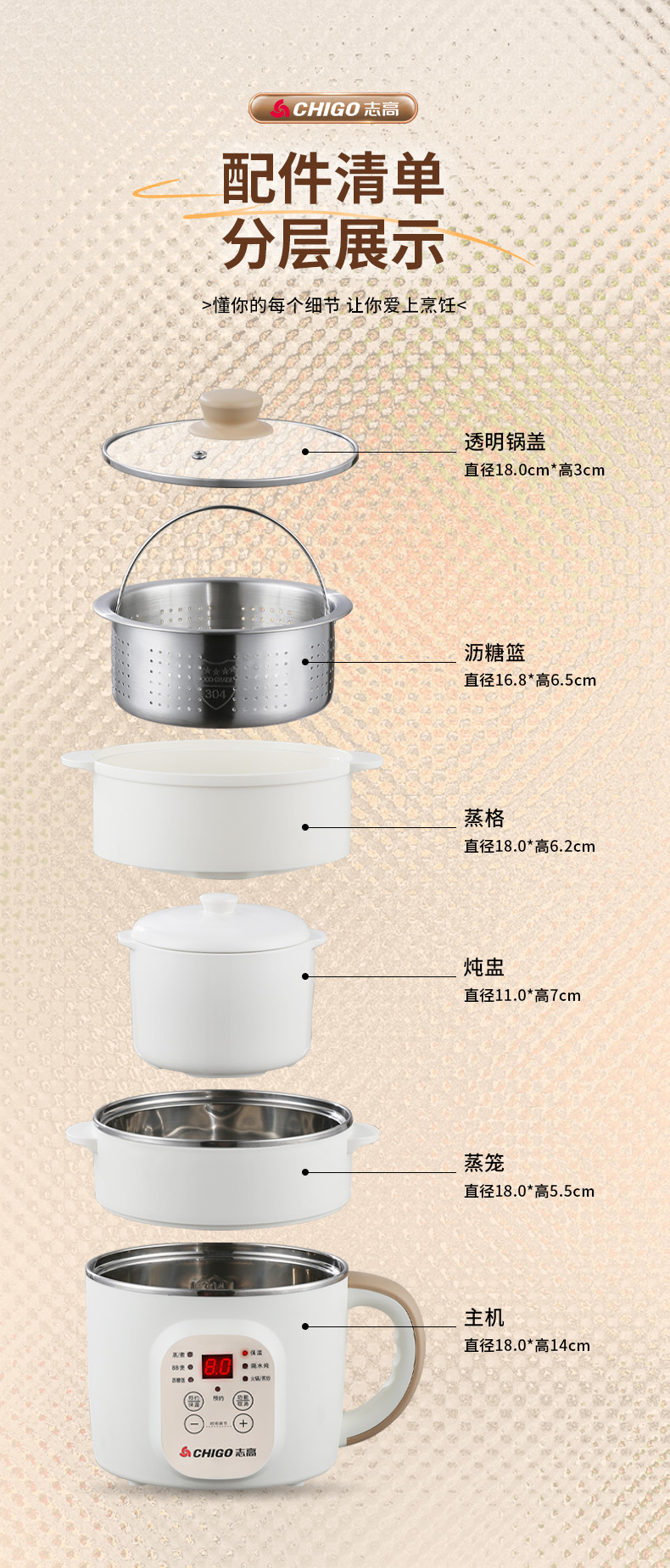18cm smart timer model + steamer + sugar draining basket + slow cooker + hanging rack