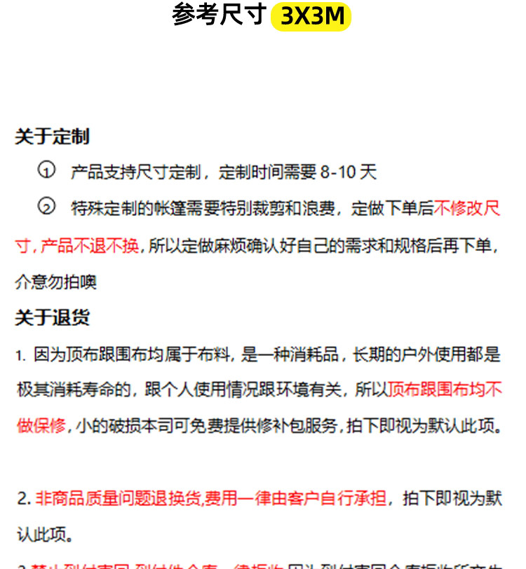 加厚 自动架 3*4+3面围布 红色