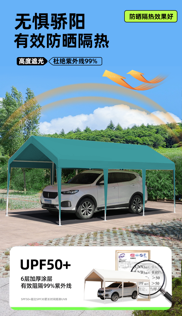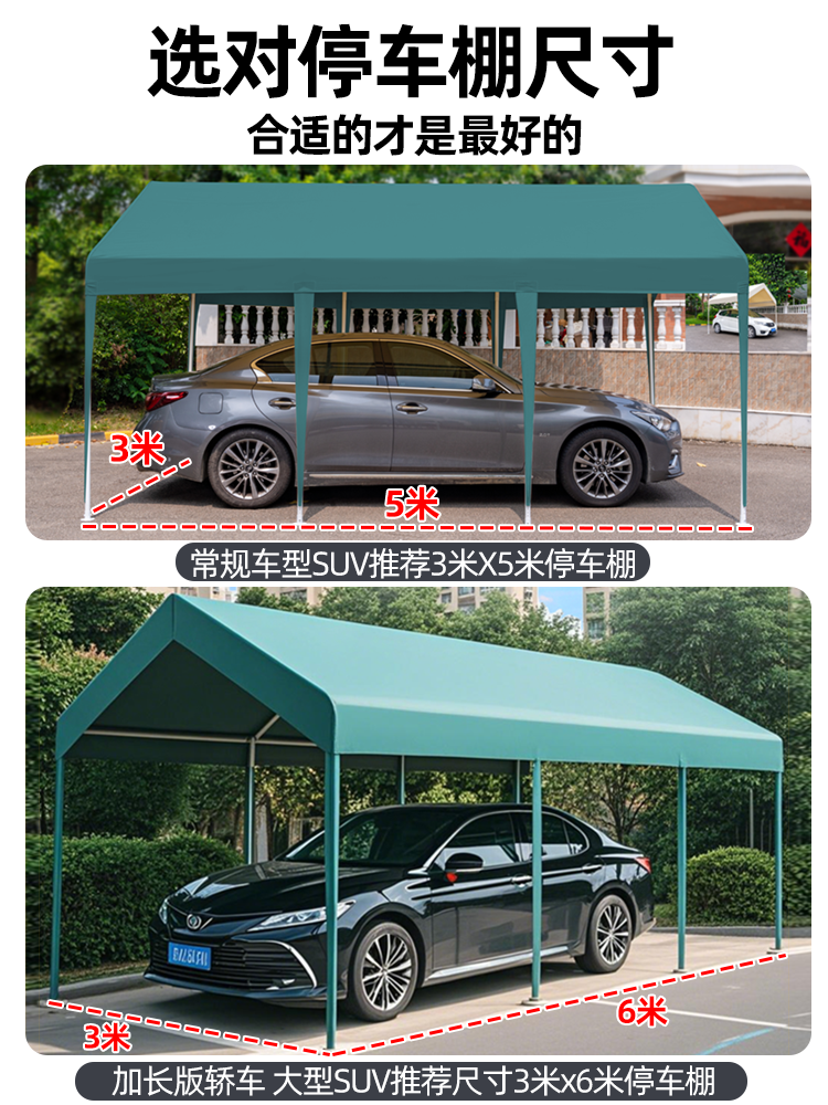 3mx6m + two sides protection cloth parking shed dark green (warranty for 5 years⭐wind-resistant⭐can be fixed)