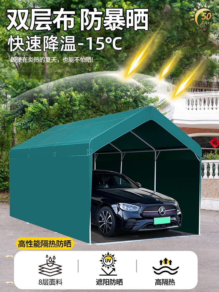 3mx5m + two sides protection cloth parking shed dark green (warranty for 5 years⭐wind-resistant⭐can be fixed)