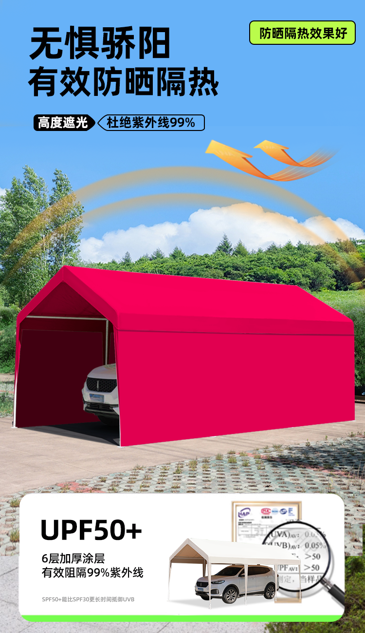 3m x 6m parking shed, wine red color (5-year warranty)⭐wind-resistant⭐can be fixed)