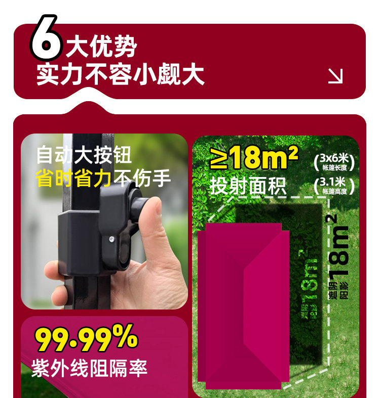 extra thick black hexagonal 3*6 red [double-layer extra thick rainstorm cloth super sun protection] [tube thickness 4cm weight 36.00kg warranty 5