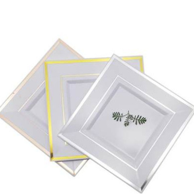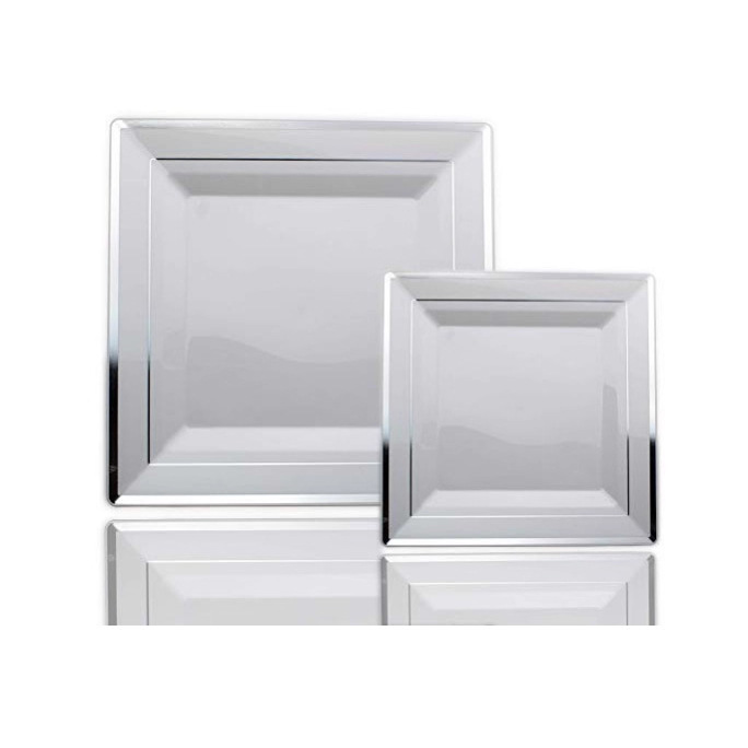 6.5-inch white-based silver-edged square plate, 1 piece per pack