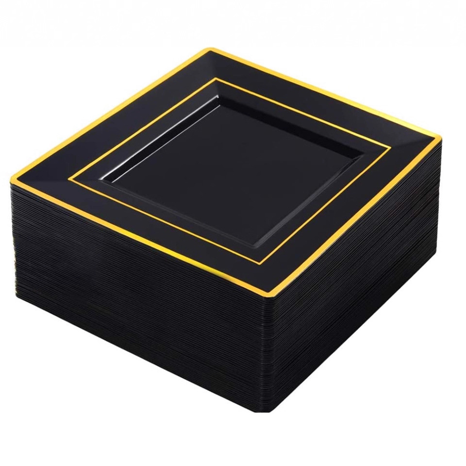 6.5-inch black-based gold-edged square plate, 1 piece per pack