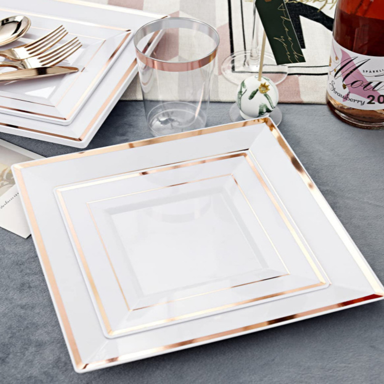9-inch white-based gold-edged square plate, 1 piece per pack
