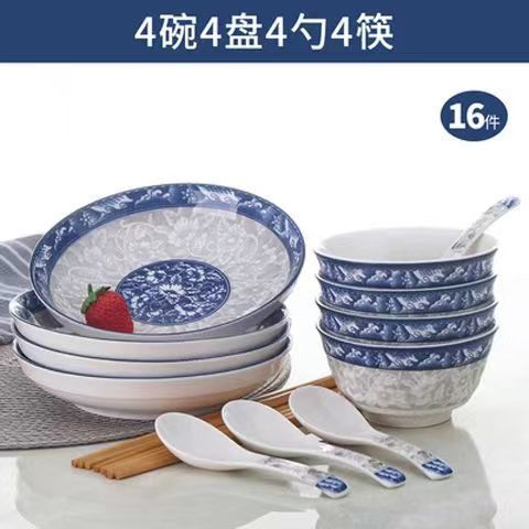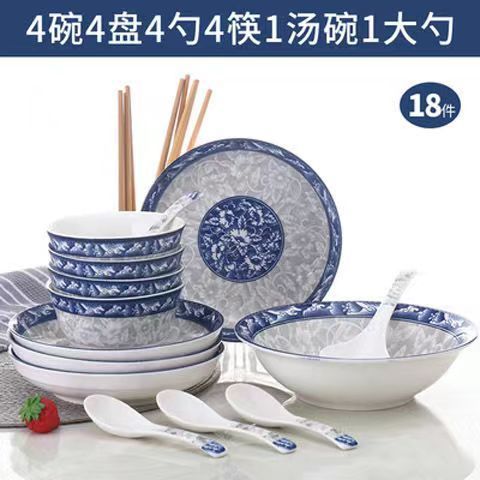 /98 pieces of blue and white flowers with soup bowl/2024/jingde youpin