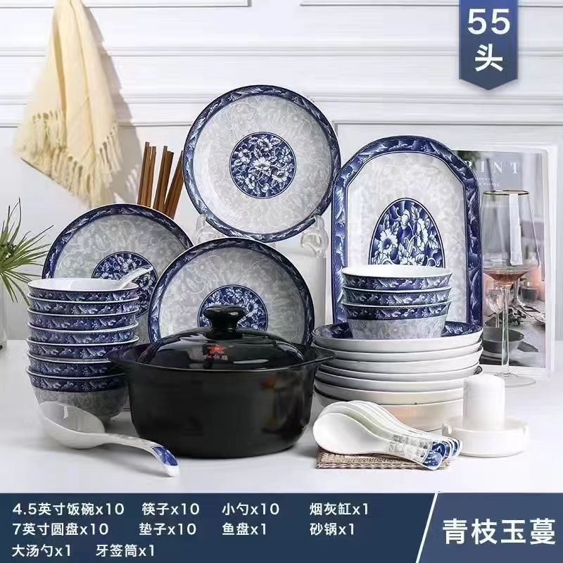 /55 pieces of blue and white with casserole/2024/jingde youpin