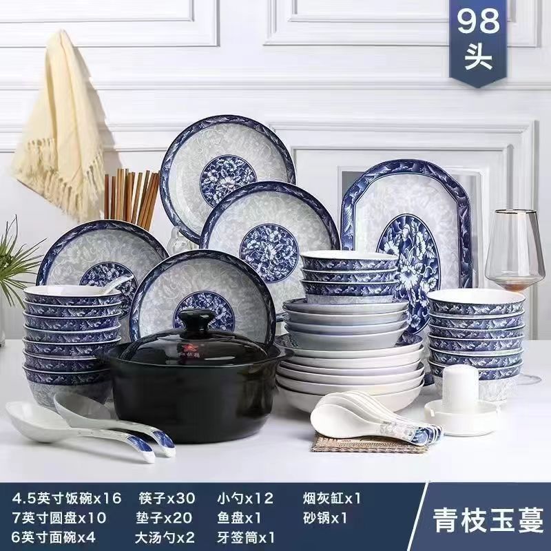 /98 pieces of blue and white with casserole/2024/jingde youpin