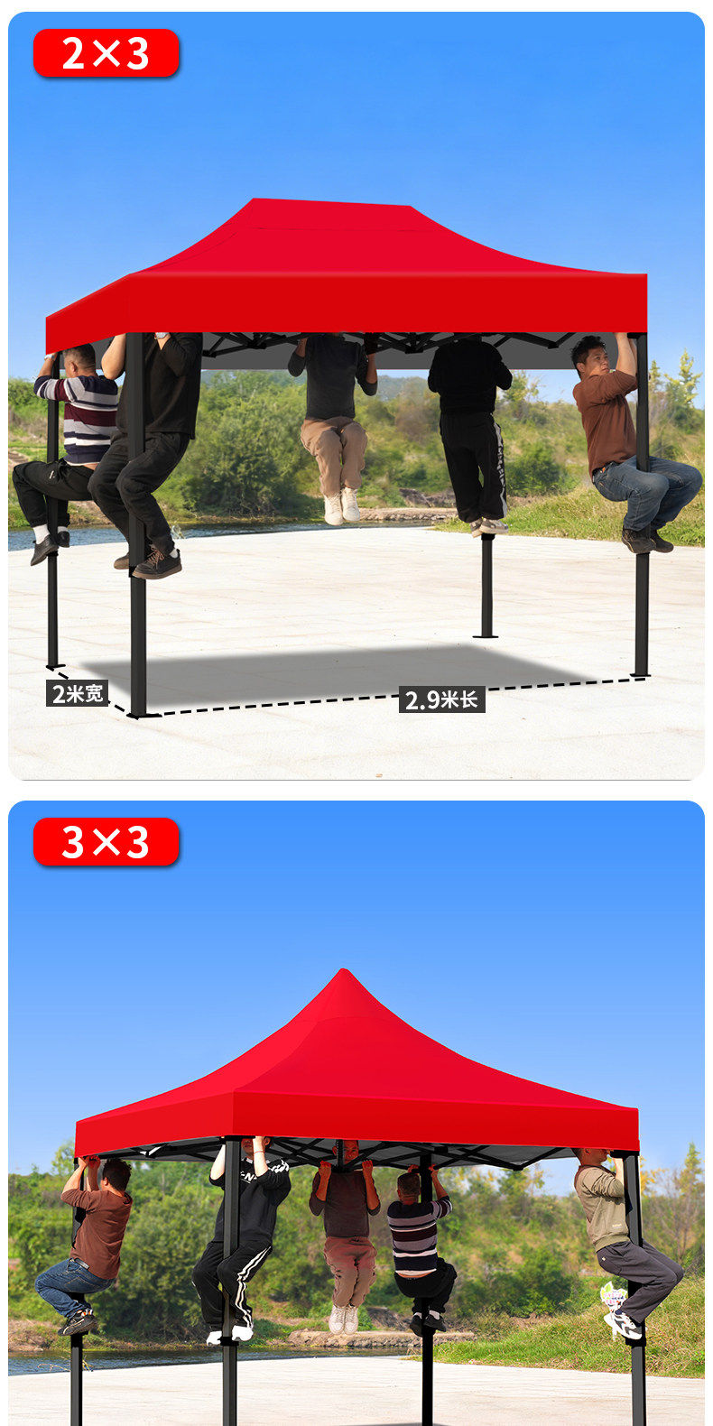 2*3 加厚 自动架 +3面围布 红色 ( 酒红/卡其/墨绿/蓝留言)