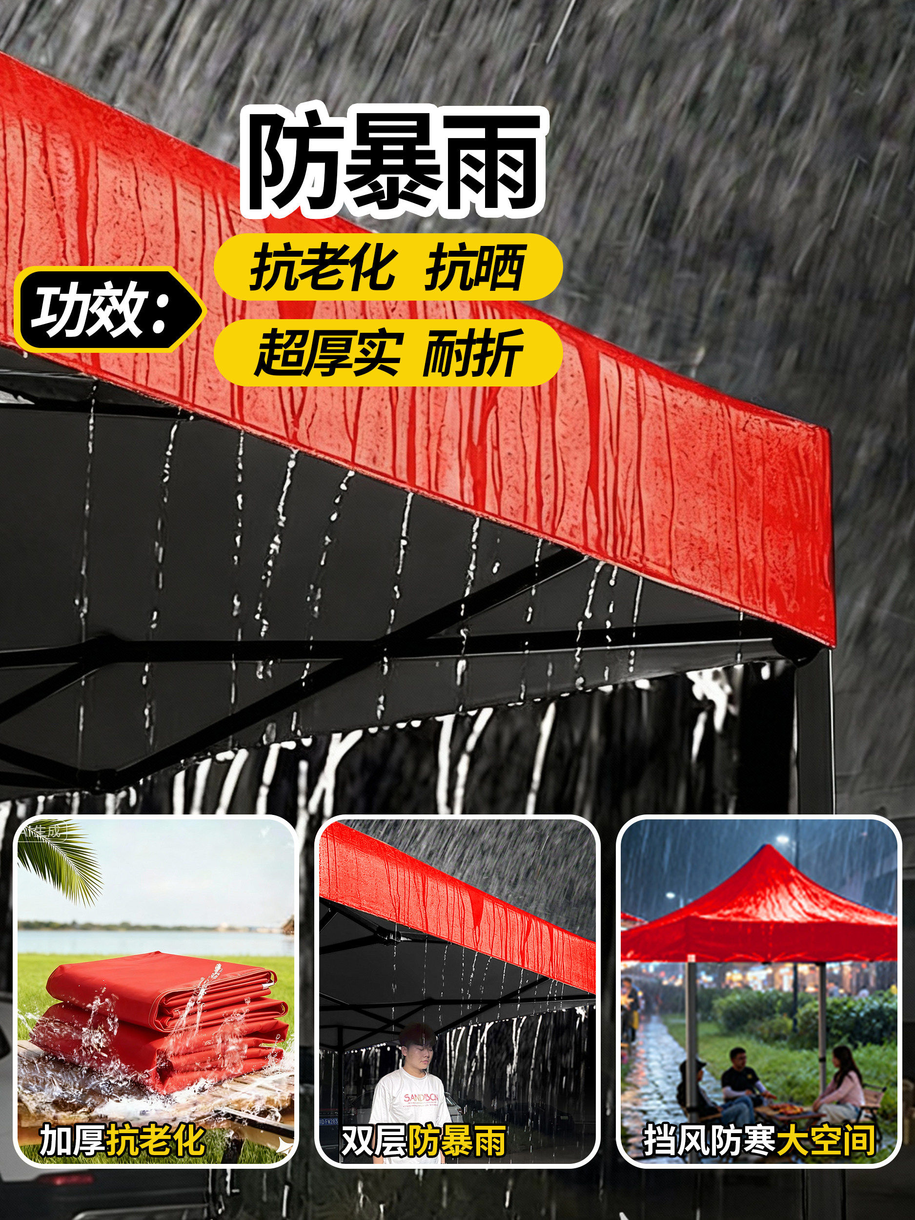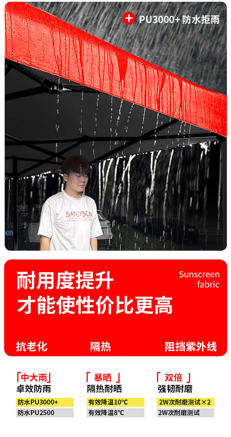 3*6 加厚 自动架 +3面围布 红色( 酒红/卡其/墨绿/蓝留言)