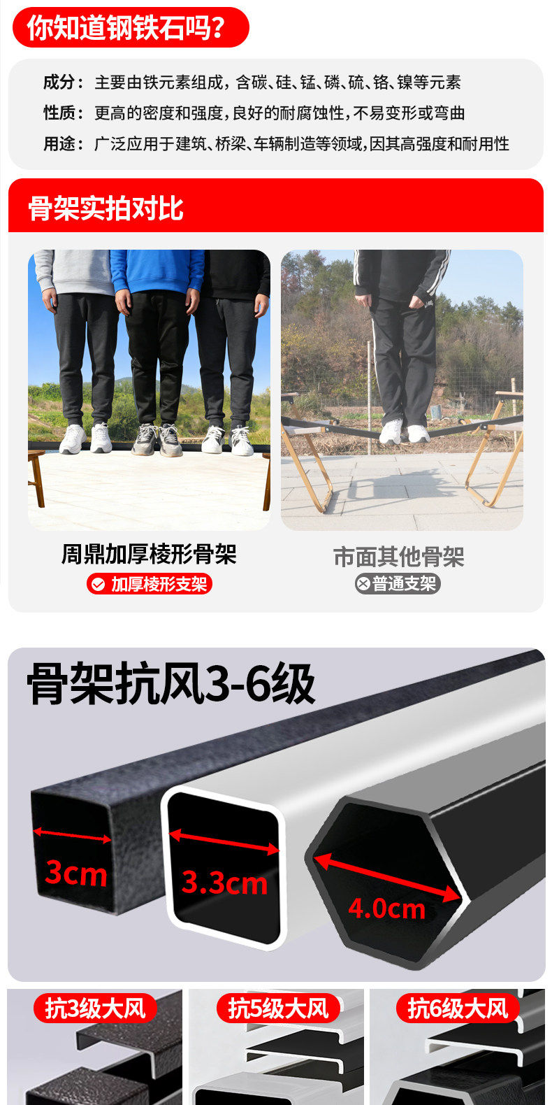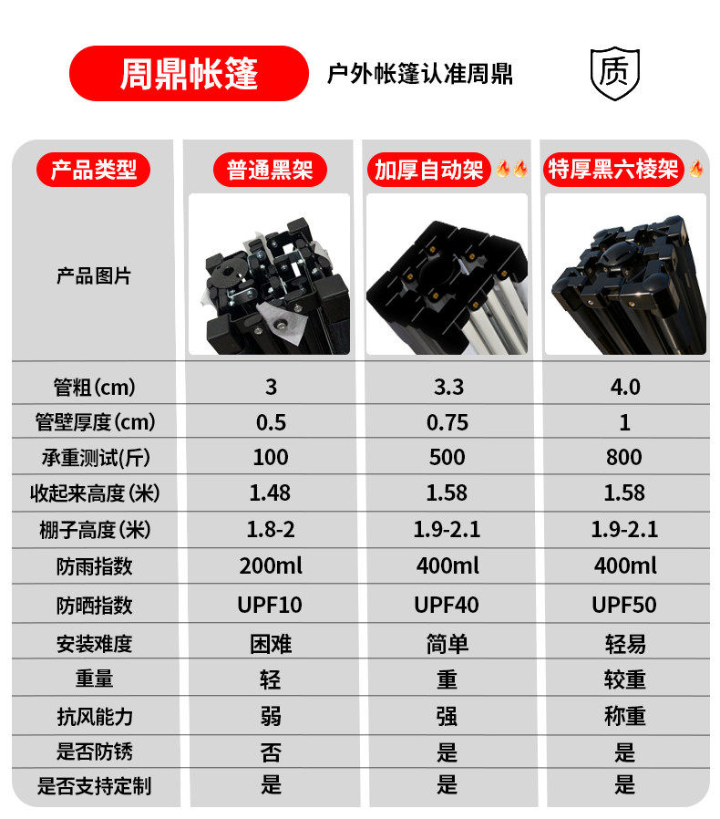 3*3 特厚 六棱架 +3面围布 红色 ( 酒红/卡其/墨绿/蓝留言)