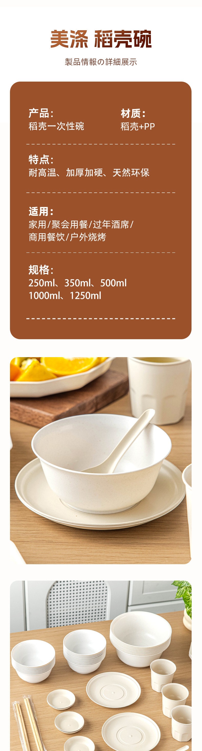 thickened rice husk 1000ml bowl [50 pcs] ###