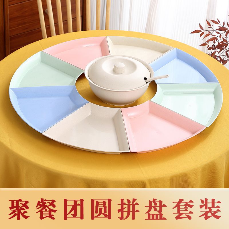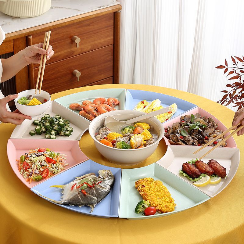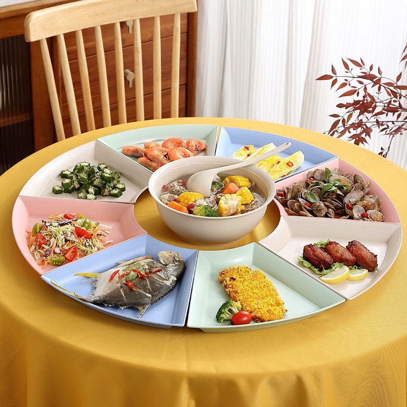 mixed color * 8 octagonal plates + big soup basin 1 set