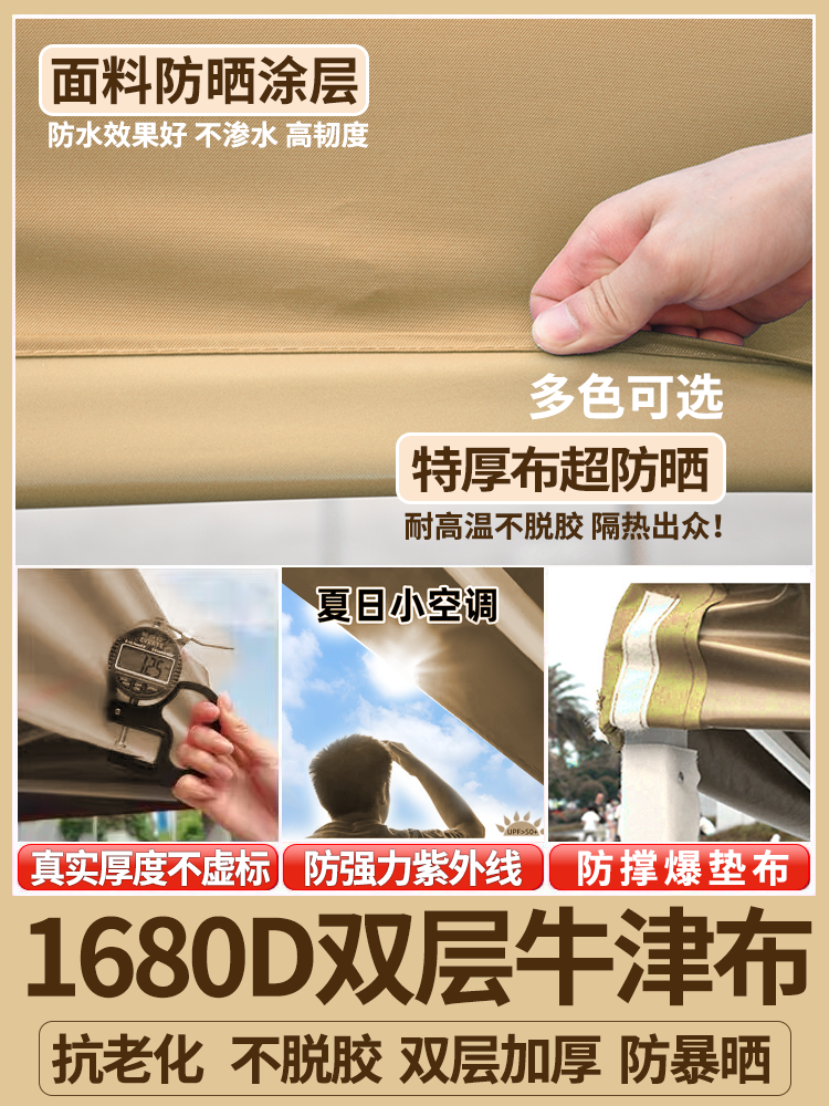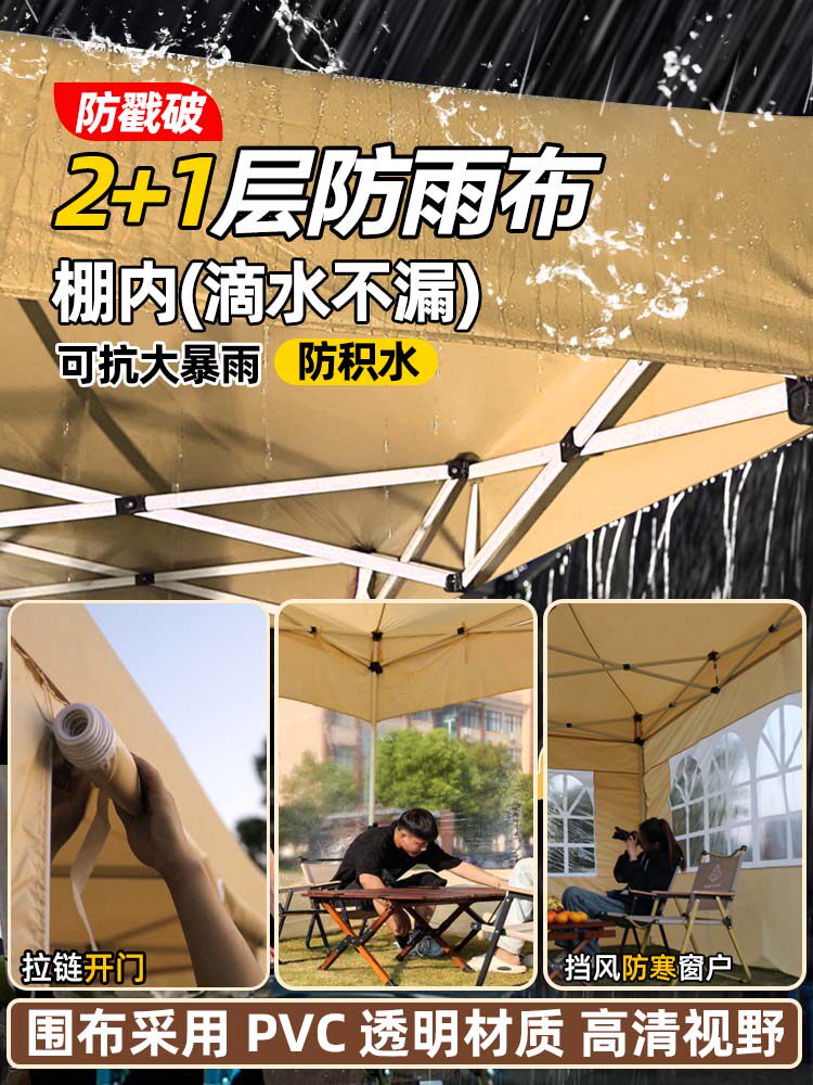 2*2 thickened automatic rack khaki color +3 sides transparent [rain-proof + cold-proof + windproof]]
