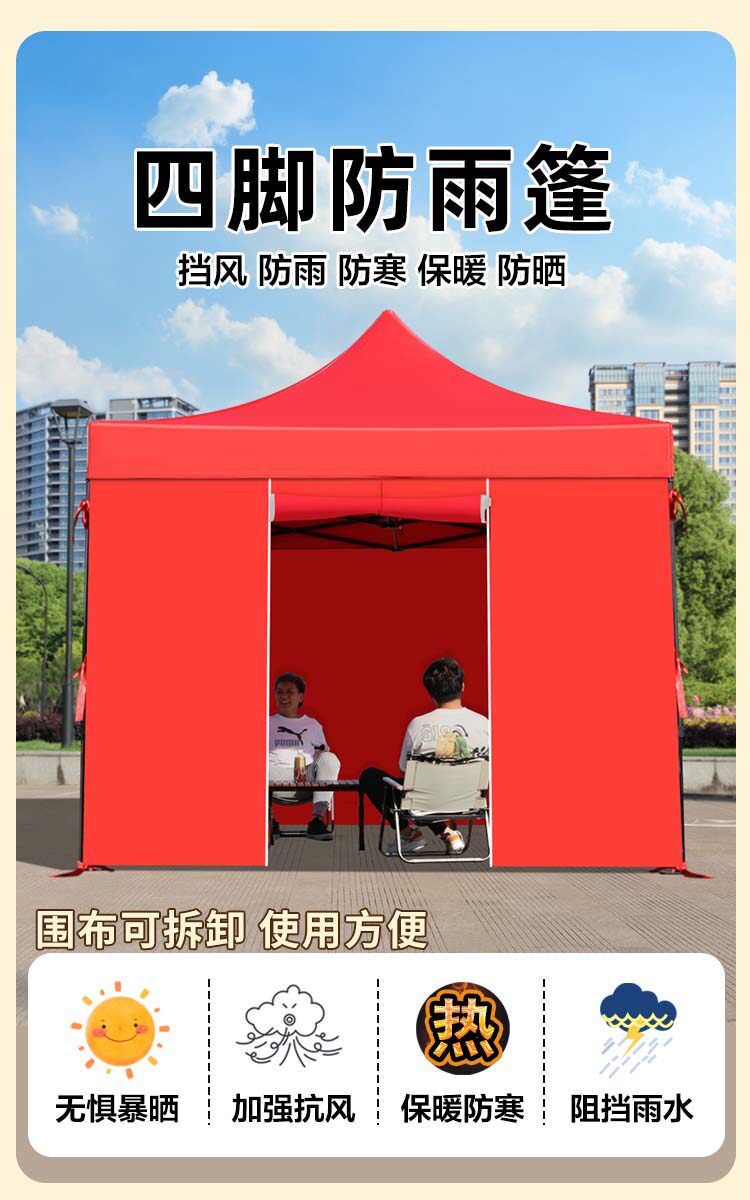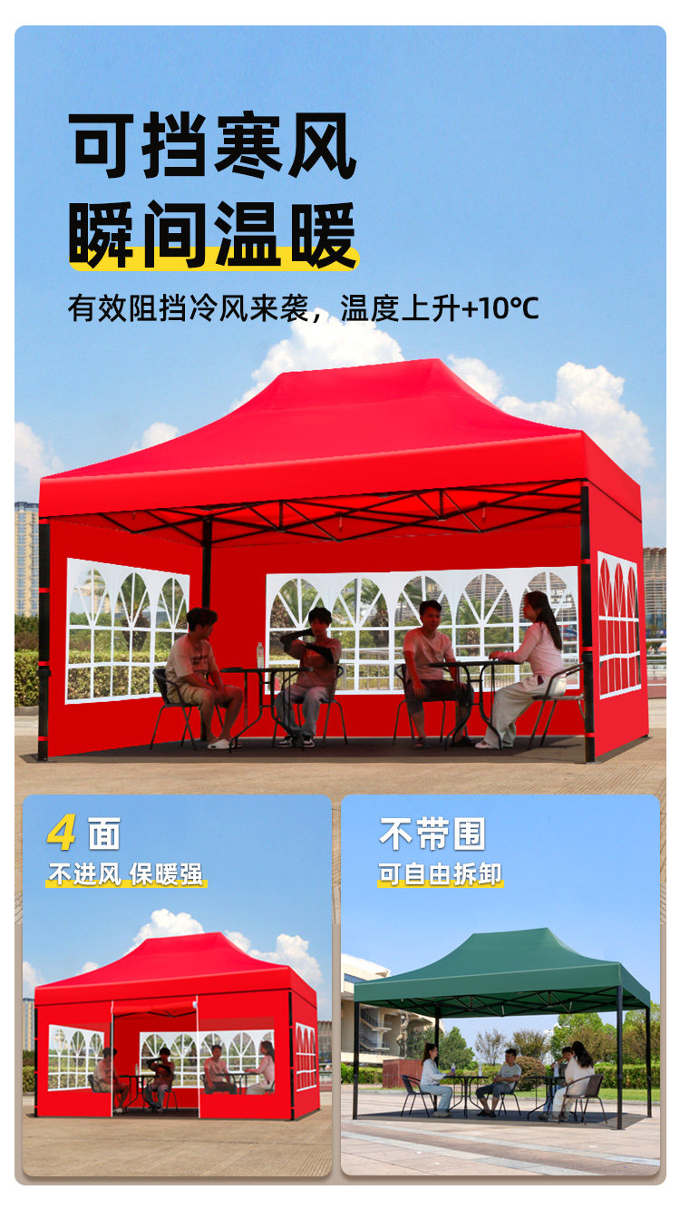 black hexagon 3*4.5 + 4-sided protection cloth red [warm and thick]⭐cold-proof and windproof】
