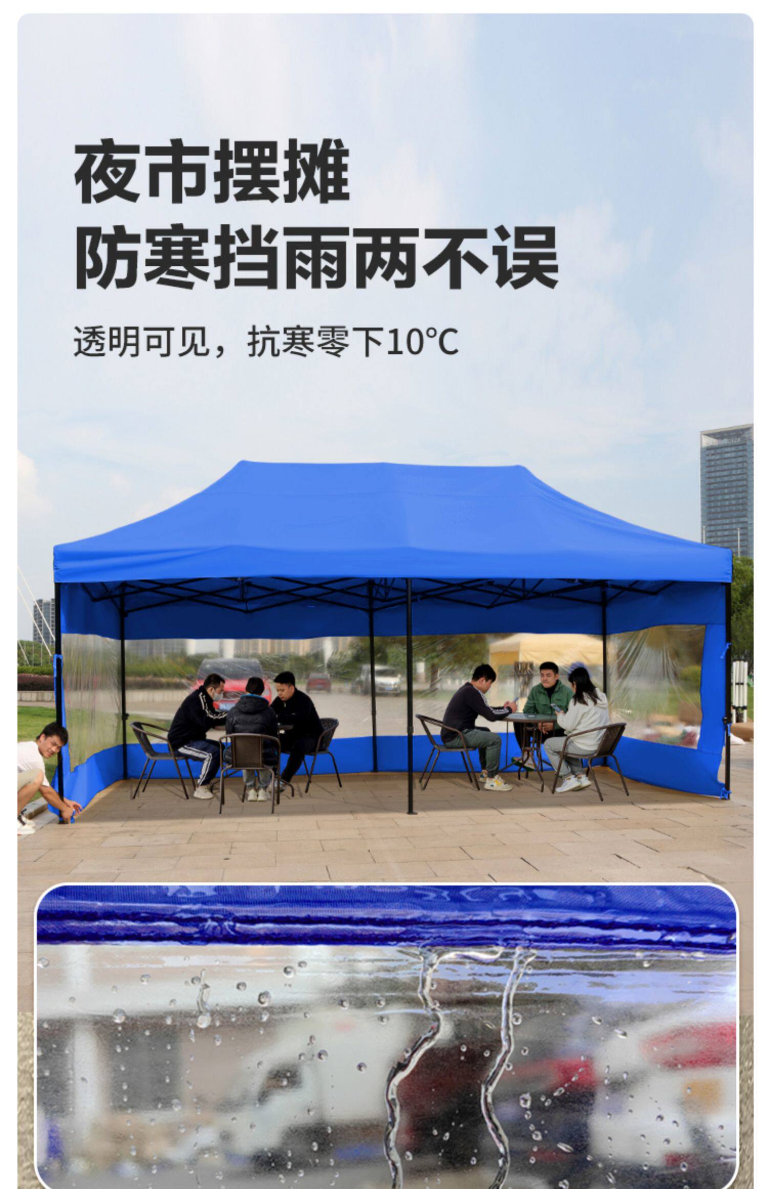 黑六棱 3*4+4面透明 蓝色 【保暖加厚⭐防寒挡风】