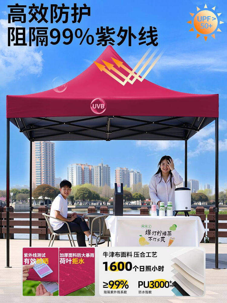2*2 加厚 自动架 +3面围布 红色 ( 酒红/卡其/墨绿/蓝留言)