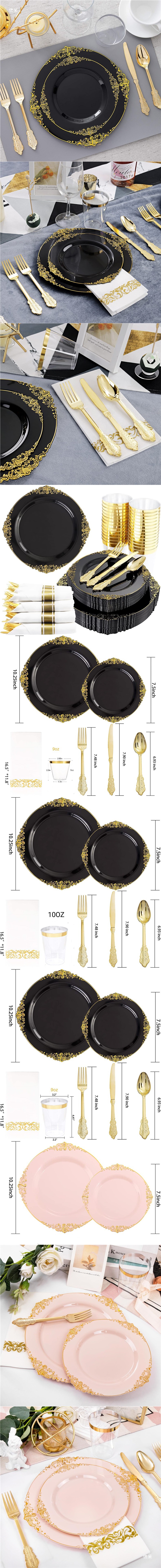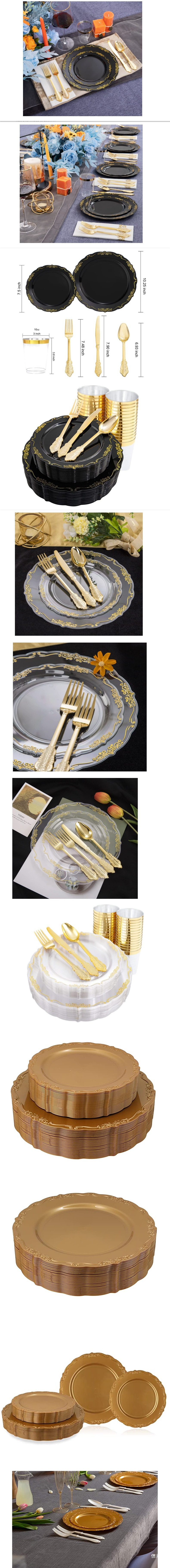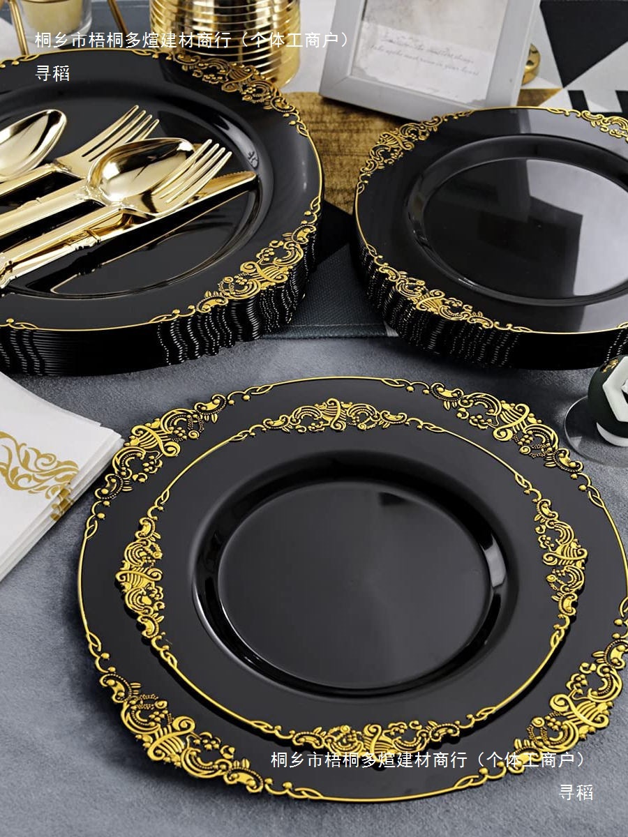10.25-inch black golden edge relief dragon pattern plate 26cm 6 pieces