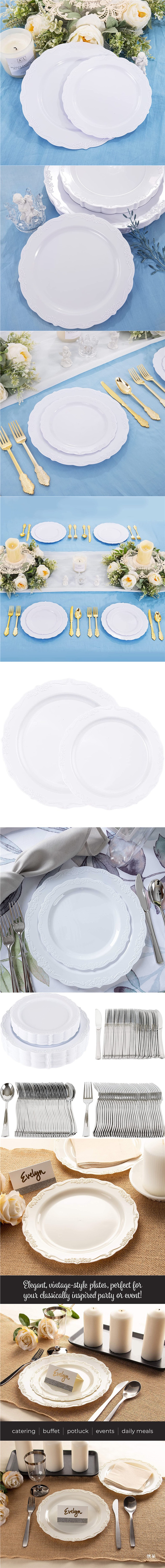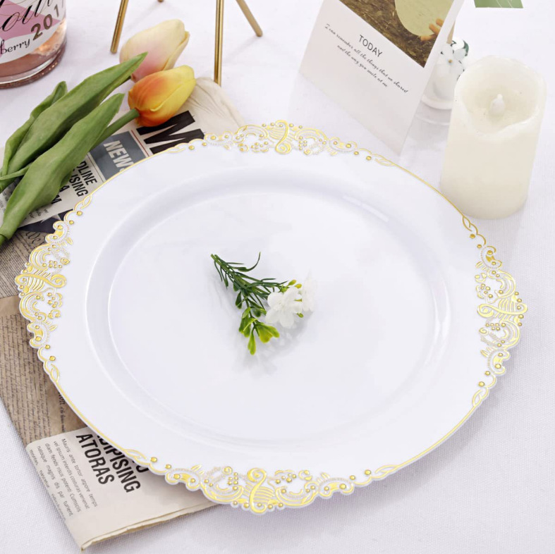 10.25-inch white relief plate 26cm 6 pieces