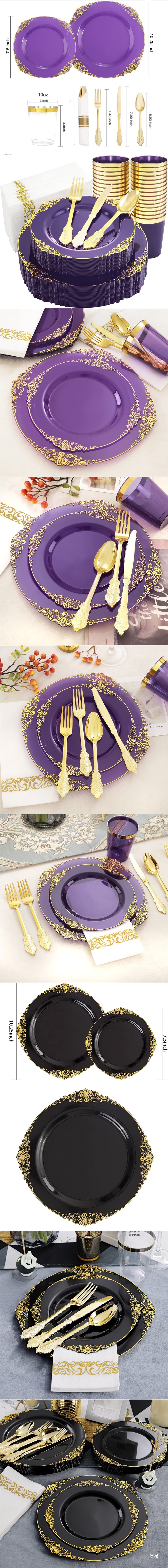10.25-inch transparent purple golden edge relief dragon pattern plate 26cm 6 pieces