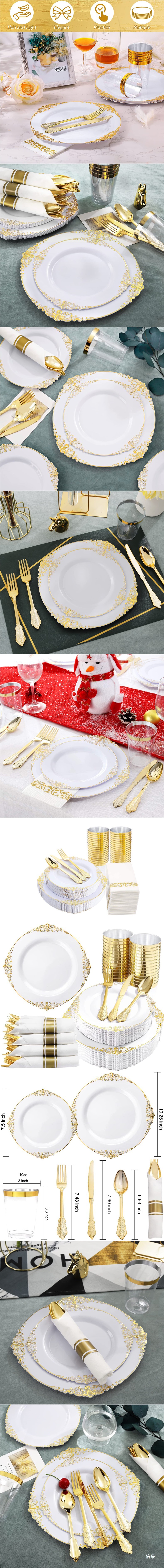 10.25-inch white golden edge relief dragon pattern plate 26cm 6 pieces