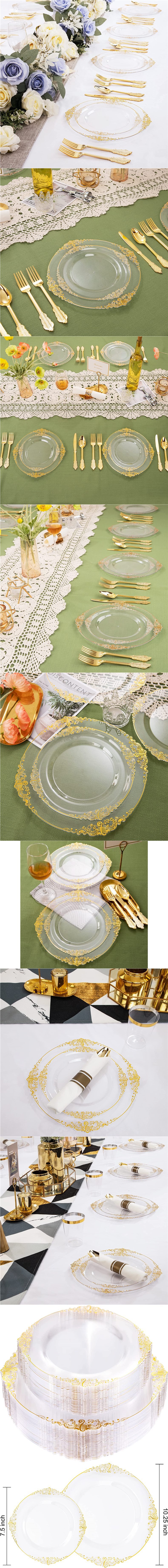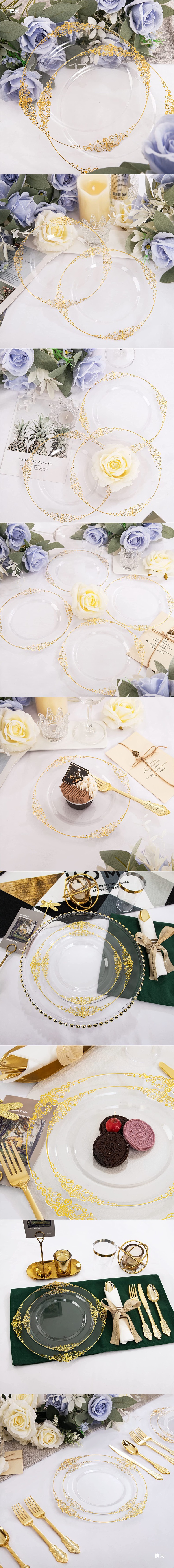 10.25-inch transparent golden edge relief dragon pattern plate 26cm 6 pieces