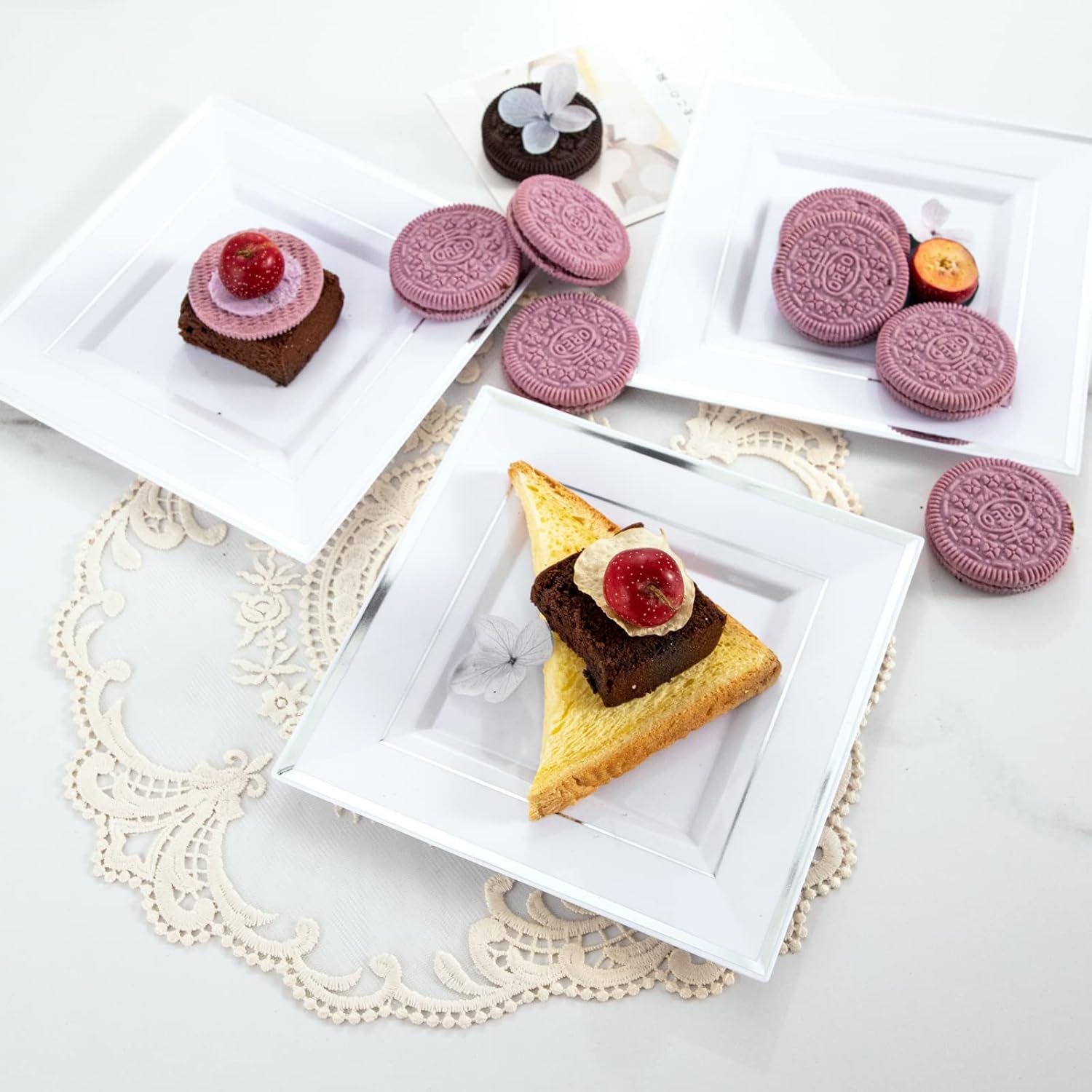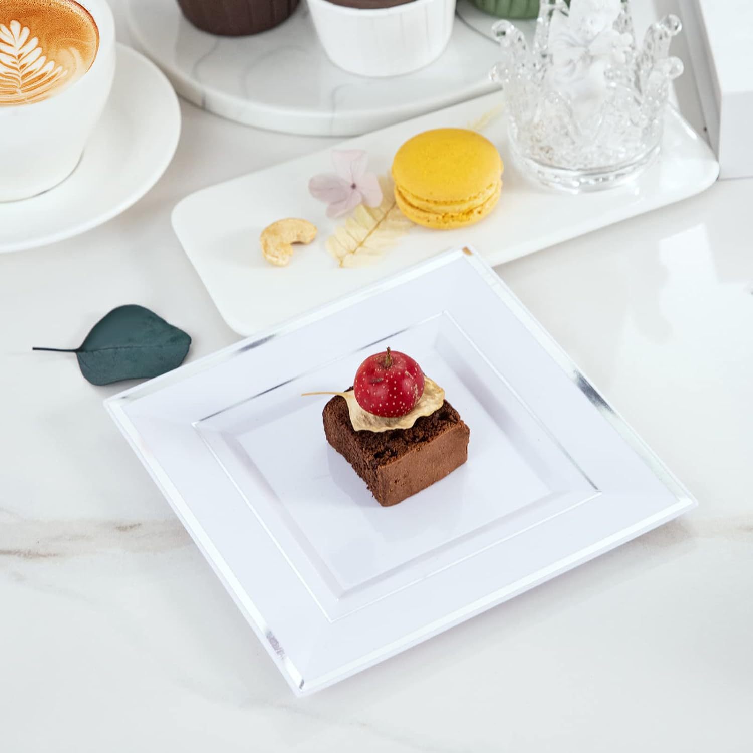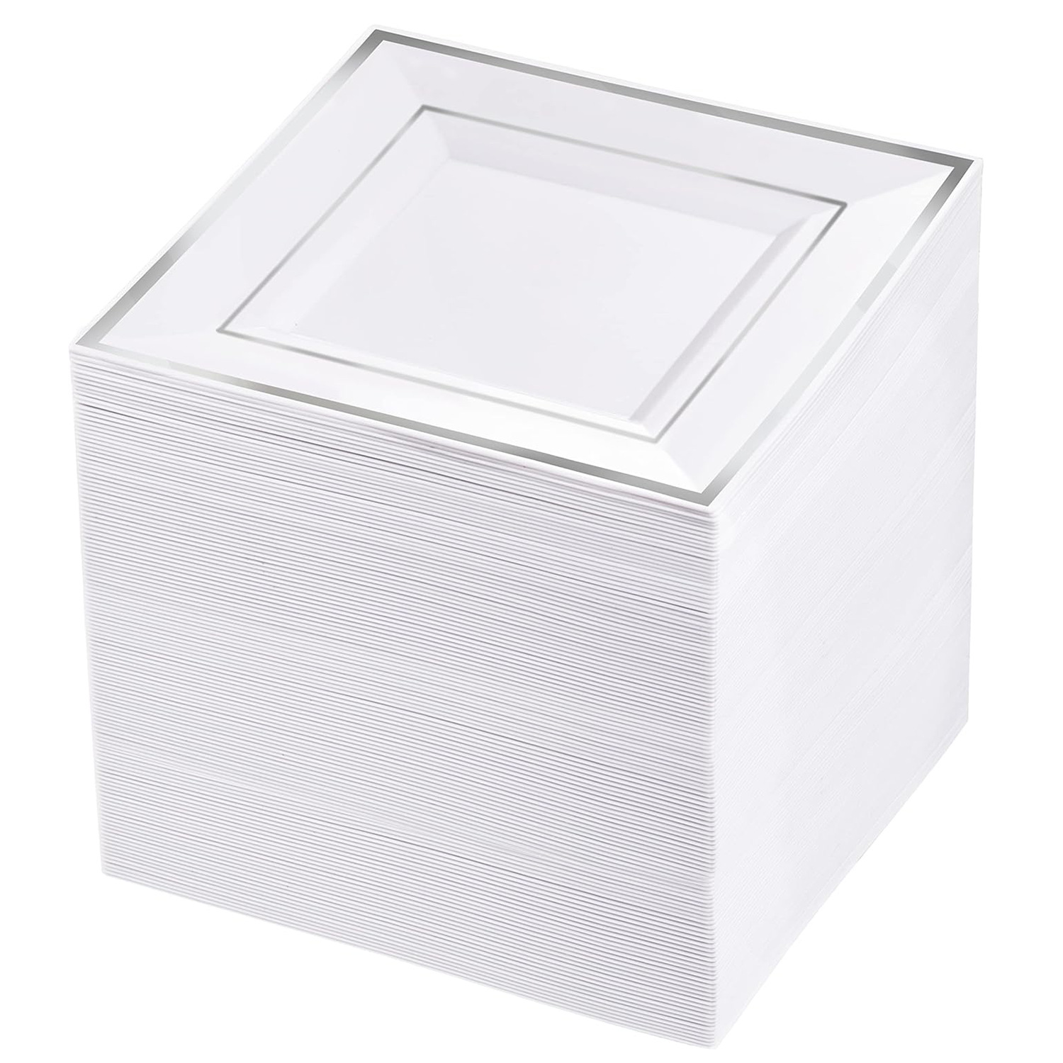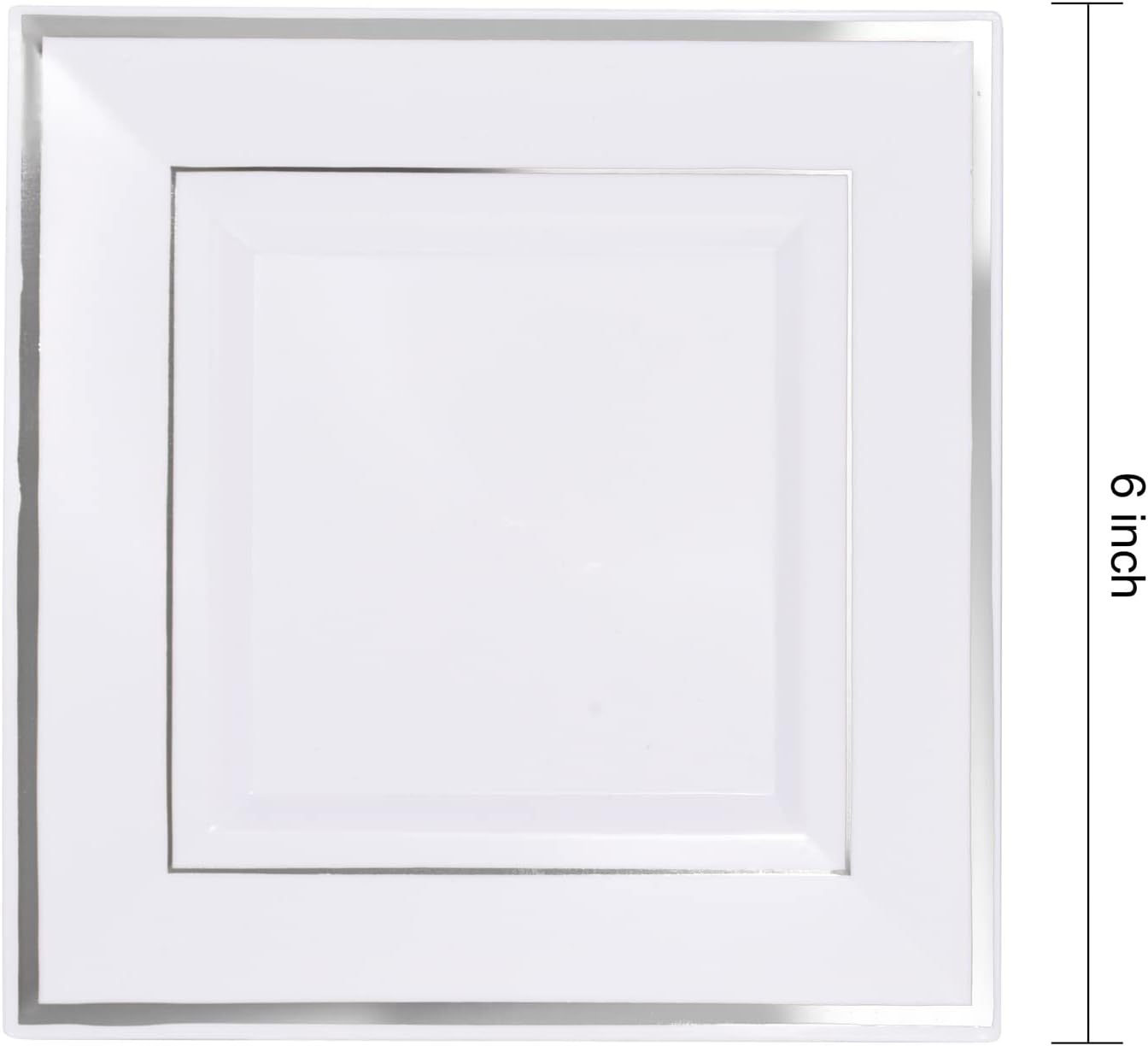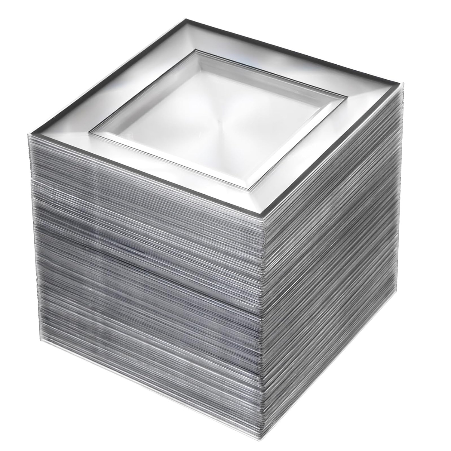 white hot silver edge square plate 10-inch