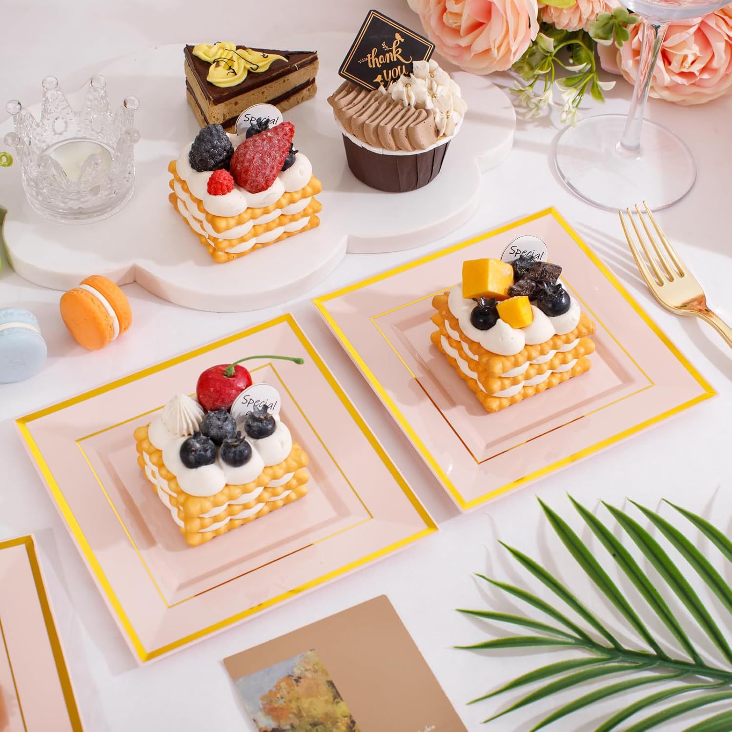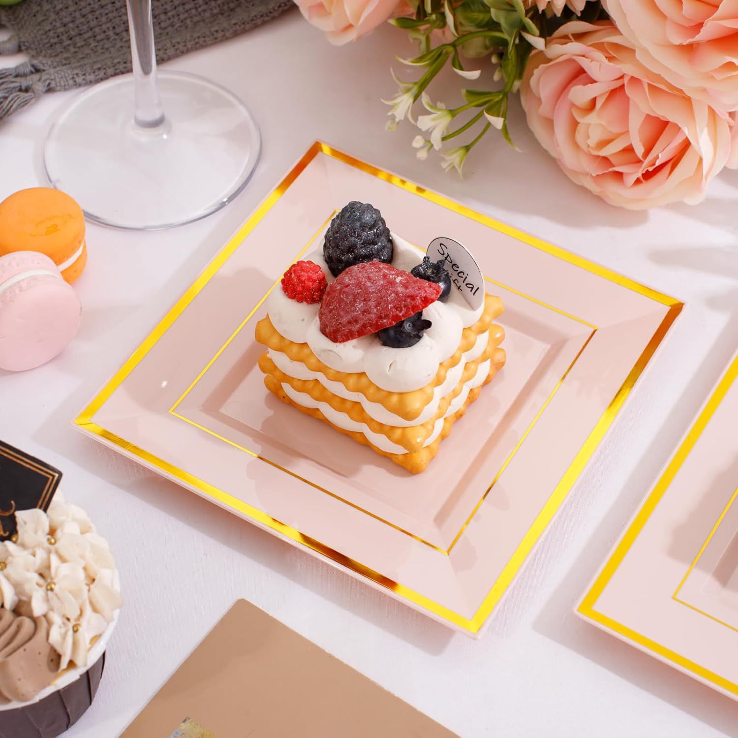 transparent hot rose golden edge square plate 10-inch