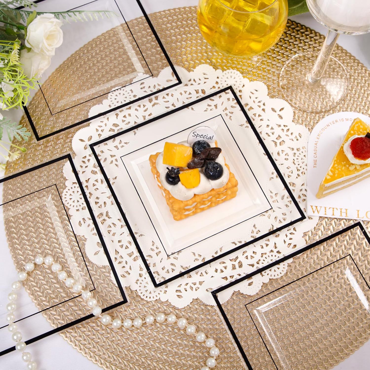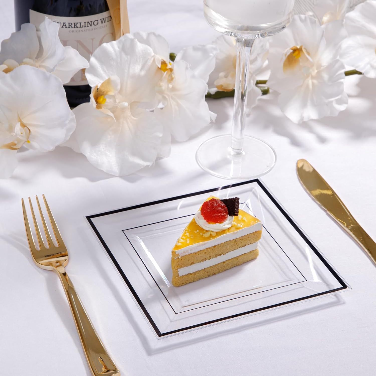 transparent gilding edge square plate 10-inch