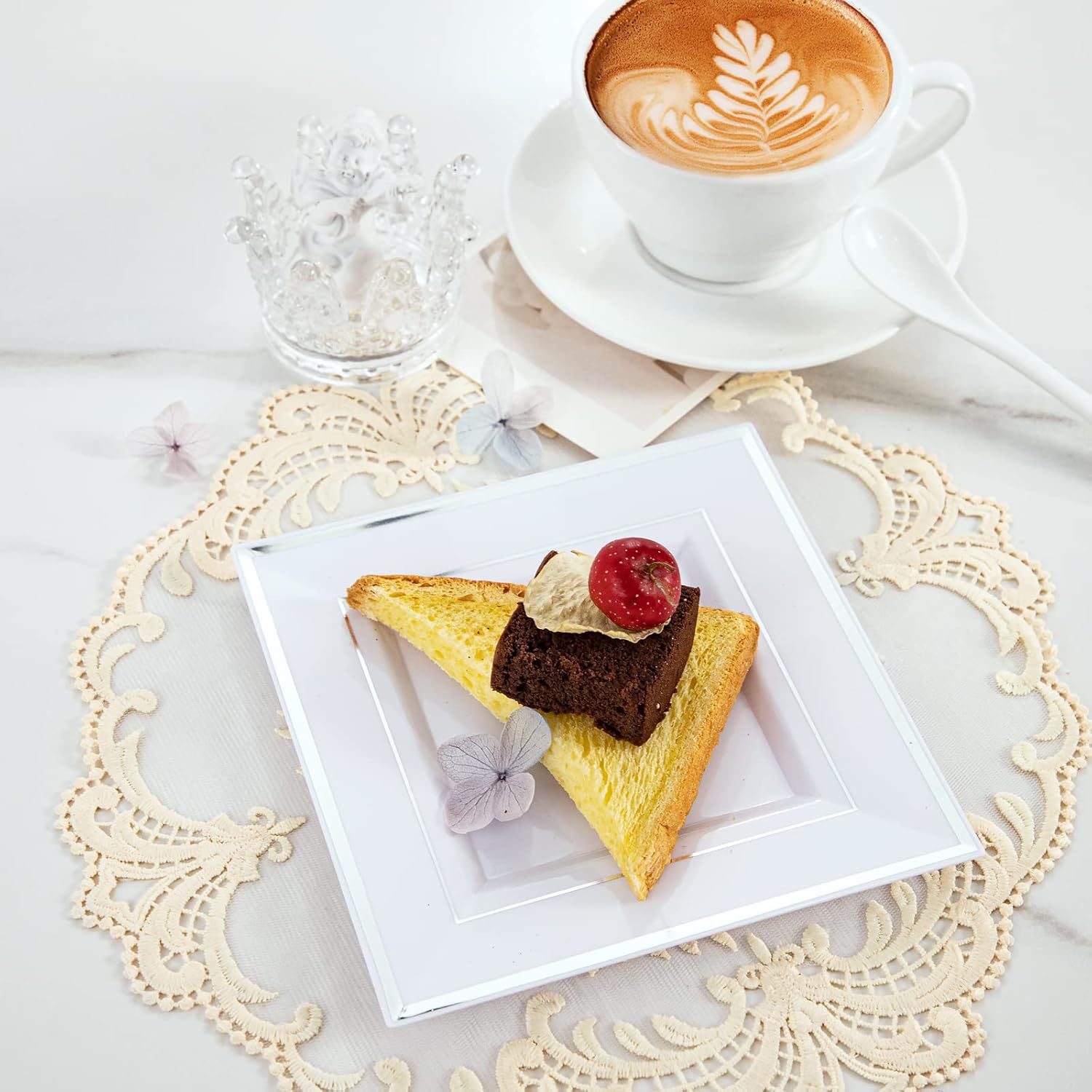 transparent hot silver edge square plate 10-inch