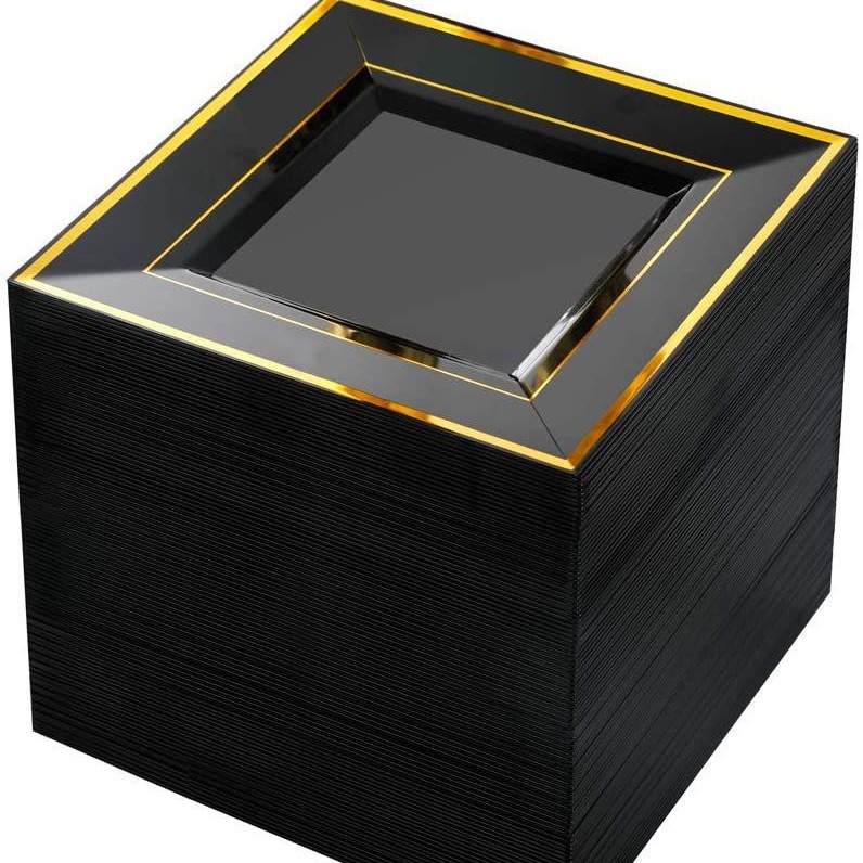 Product Name: PS Square Gold Foil Plastic White, Black Square Plate