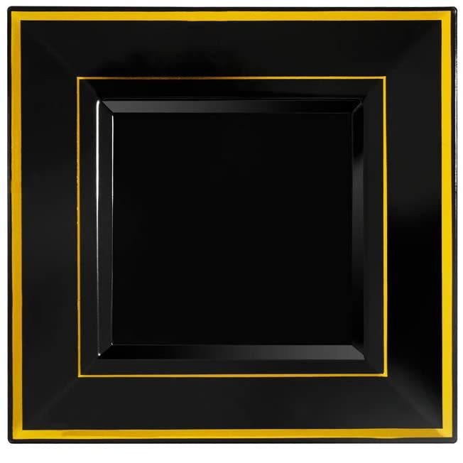 9-inch gold edge black square plate 1 pack