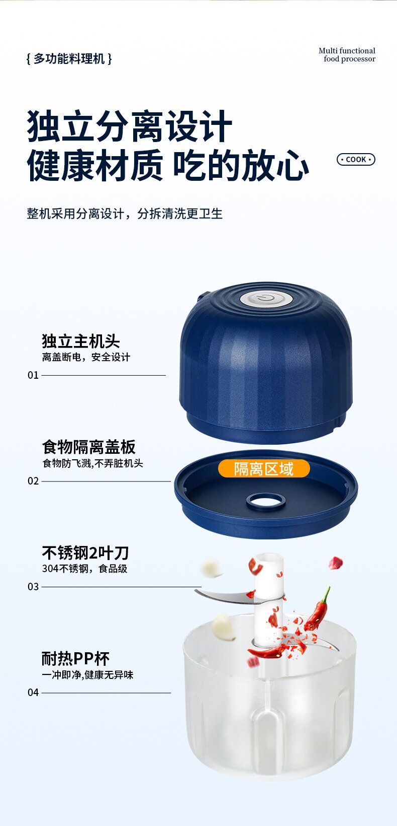 function: baby food supplement, charging portable, meat sausage, fast peel garlic