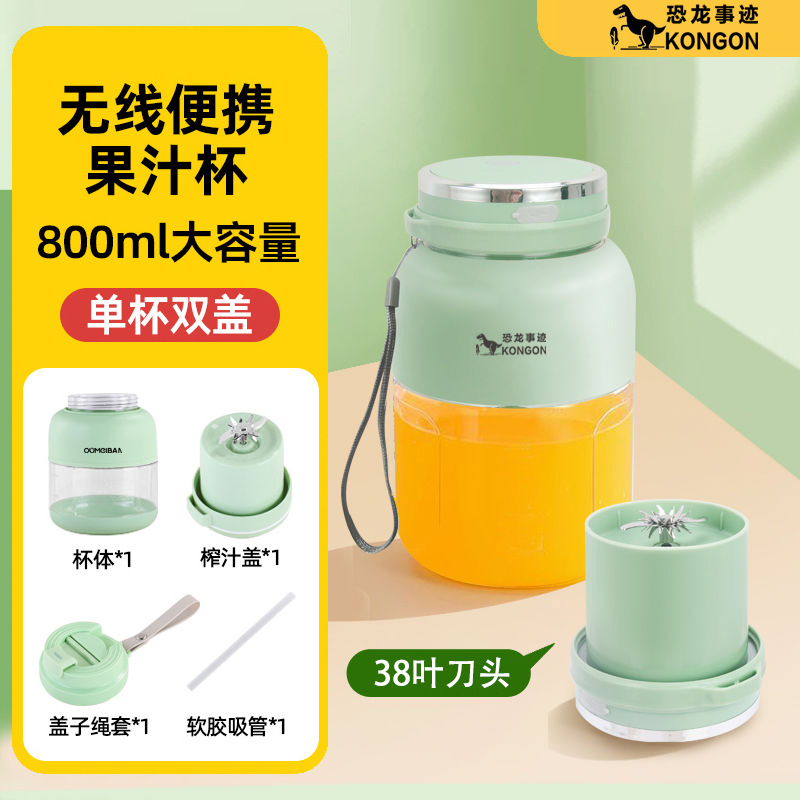 [800 ml] green – 2nd generation upgraded model + 38-blade stainless steel blade + free cup lid & charging cable