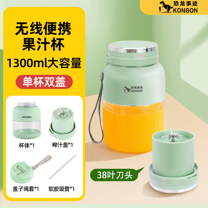 [1300 ml] green – 2nd generation upgraded model + 38-blade stainless steel blade + free cup lid & charging cable