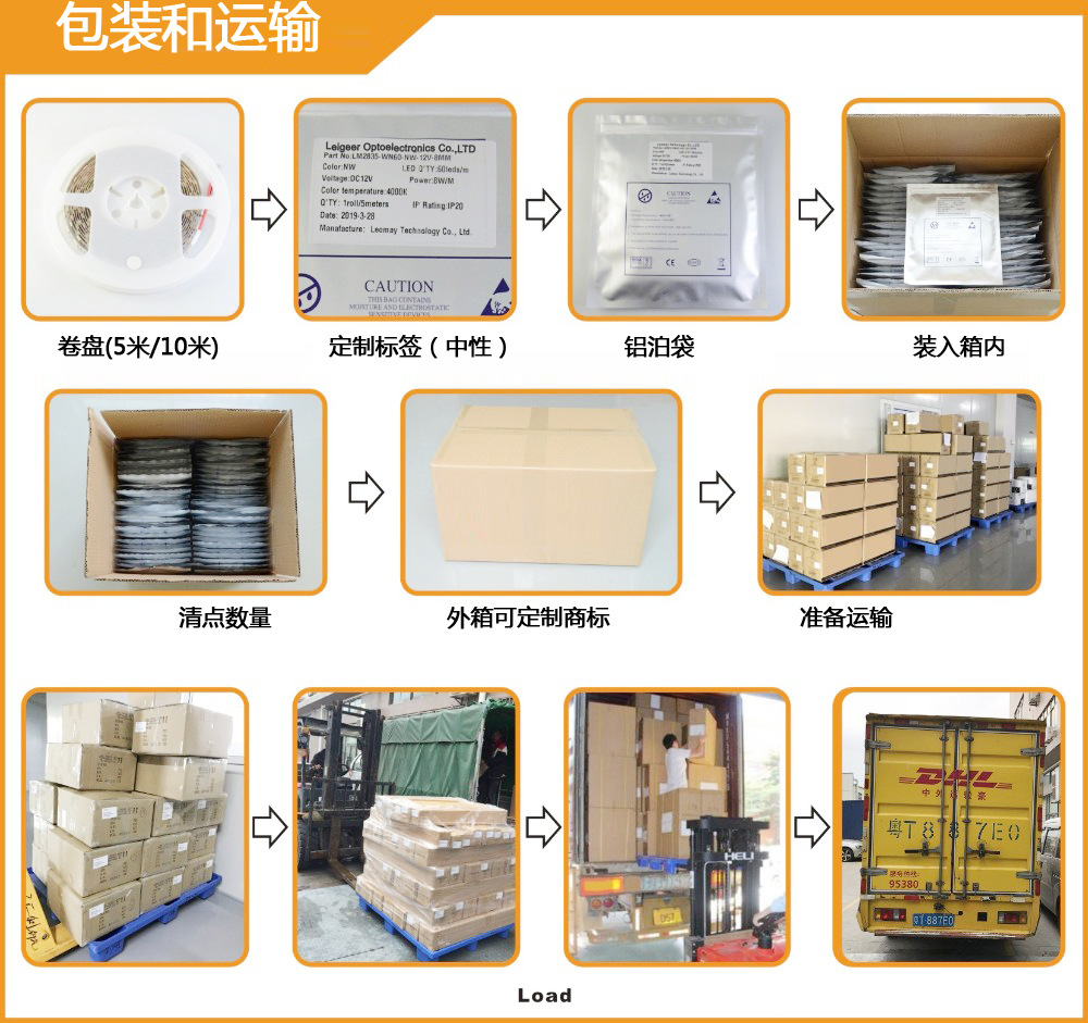 15. Packing: 5m per roll, with 3M adhesive on the back of the light strip, and sealed in a static bag.